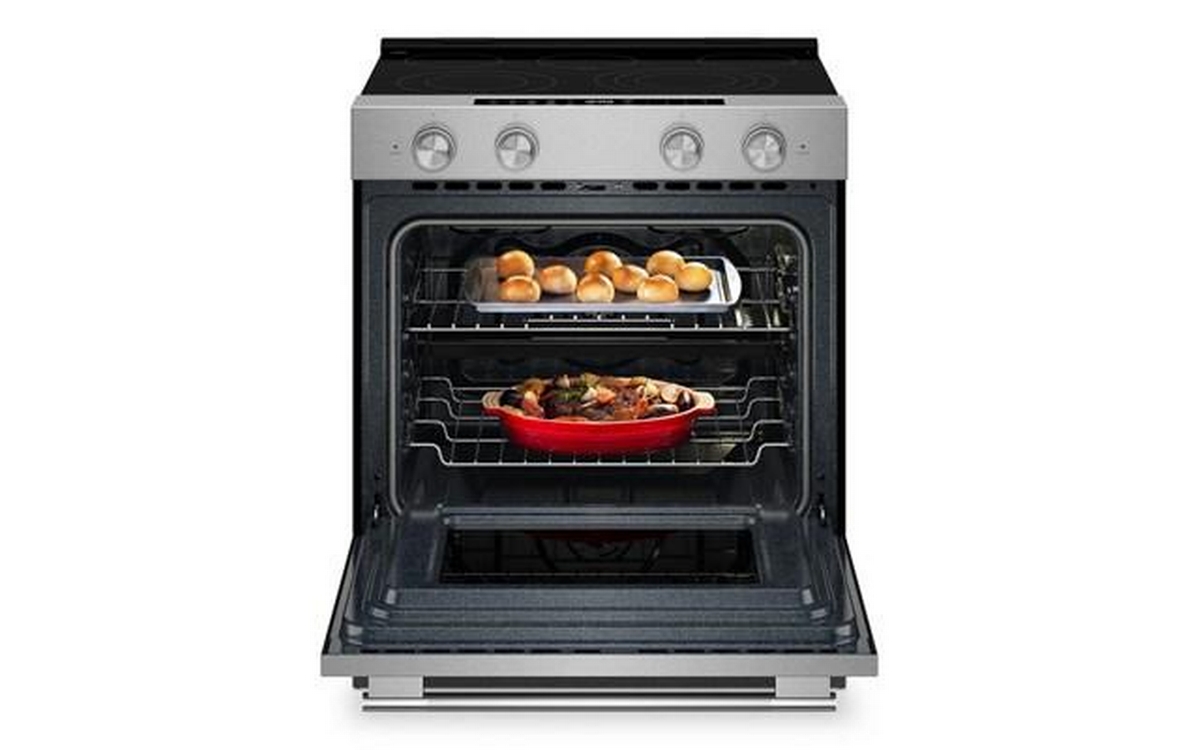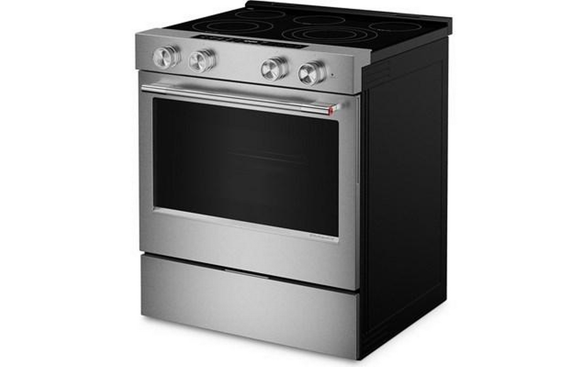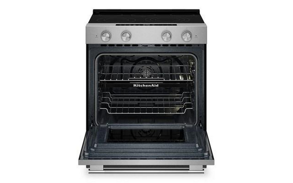 5.3 Cu. Ft. Smart Slide-in Electric Range with Two Even-Heat™ Hyper Elements and Convection Cooking Modes. Enjoy a range of possibilities with our most powerful KitchenAid 30-inch Electric Range available. Two Even-Heat™ Hyper Elements offer precise control and the versatility to take on large pots or small pans for various cooking tasks. A WiFi-enabled Smart Appliance featuring Convection Cooking Modes that help you get consistent results with optimal temperatures. A Steam Bake mode works with the included steam rack to provide additional moisture during baking, so you can enjoy Basque cheesecake and other delicious desserts. The range is designed to be personalized with a curated palette of exterior finishes and mixed metal hardware.