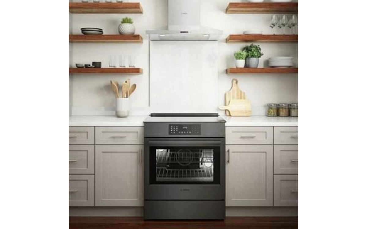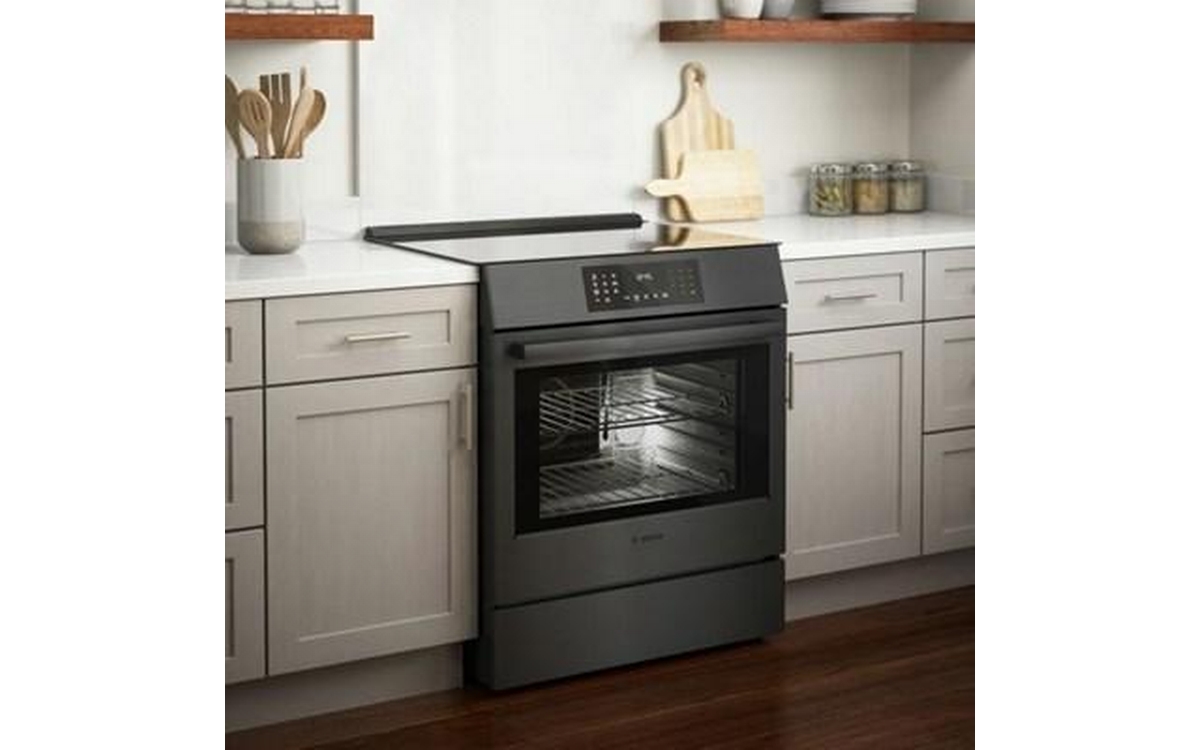 The Bosch 30" Induction Slide-in Range Allows Fast & Efficient Cooking and has an Oven that Provides Even Baking on Three Racks.