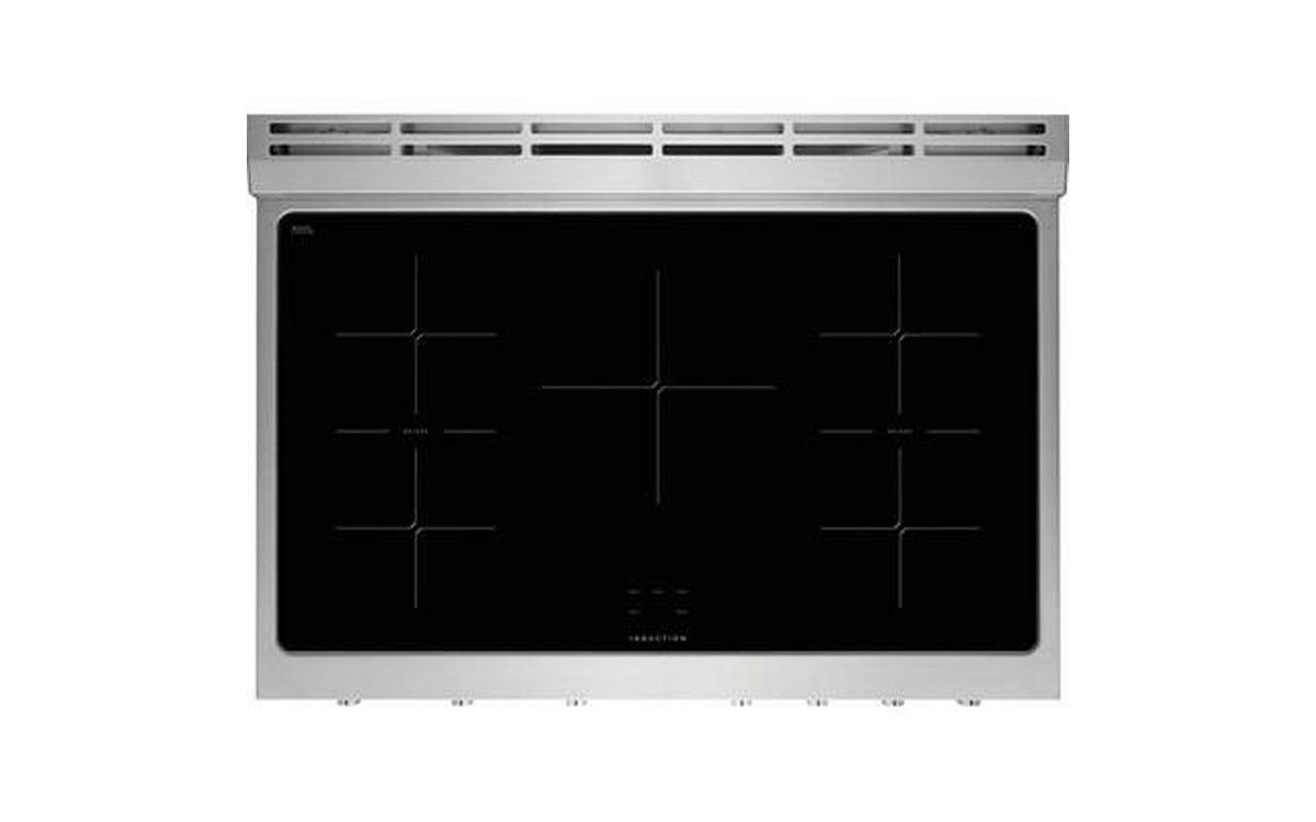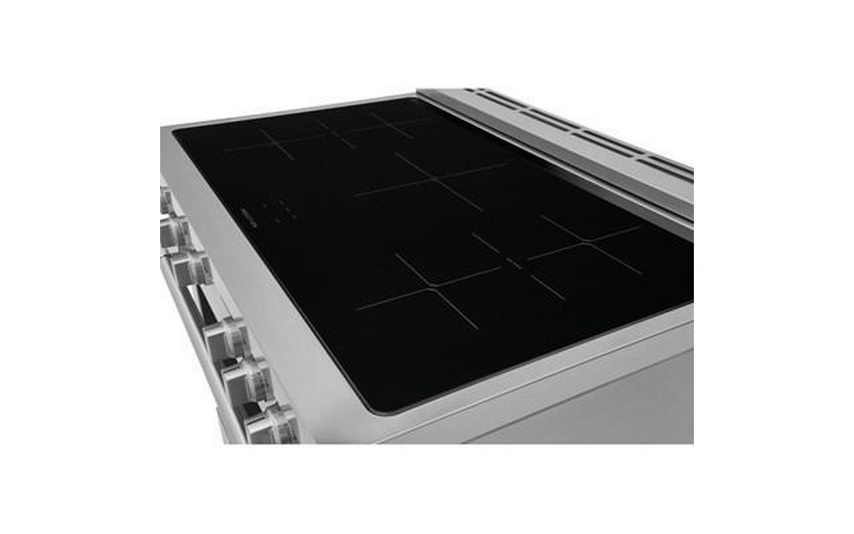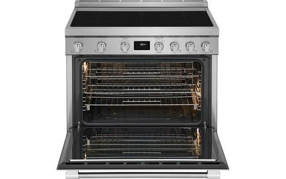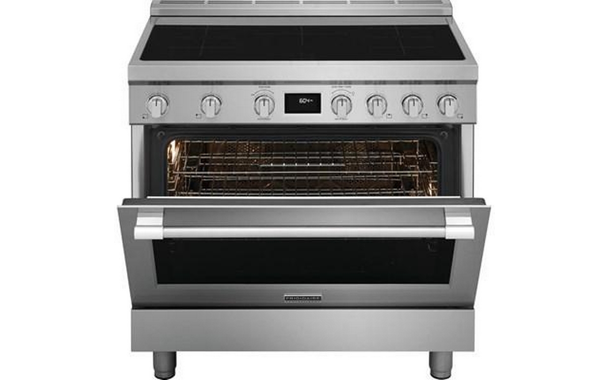 Frigidaire Professional 36-inch induction range features 5 cooktop elements, Dual Fan Convection technology, and a total oven capacity of 4.4 cu. ft.