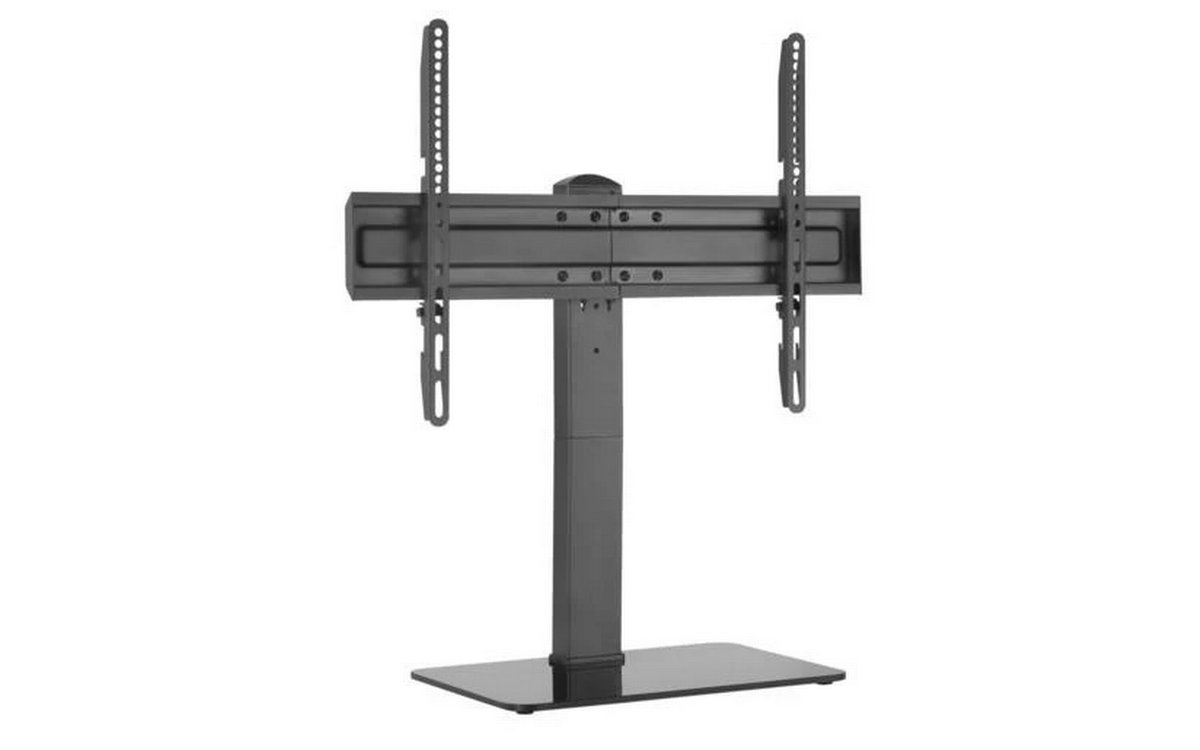 Le support TV de table AMX avec une base en verre élégante est conçu pour des écrans allant de 37" à 70". Son cadre noir robuste offre un soutien fiable tout en conservant un look moderne et minimaliste qui s'intègre parfaitement à tout type de décoration intérieure. La base en verre trempé ajoute stabilité et style, faisant de ce support une solution idéale pour exposer votre téléviseur en toute sécurité sur une table ou un centre de divertissement.