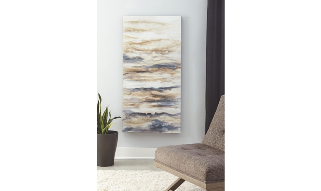 Create a relaxing scene incorporating the neutral colors and textural beauty of this wall art. Embellished with texture, shades of blue and tan mix to deliver a modern art masterpiece. Hang horizontally or vertically—ideal for complementing any decor, especially a modern decor.