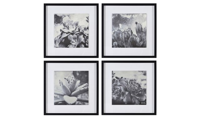 Set of 4 white and black frames with the image of plants. Outline of each black frame.