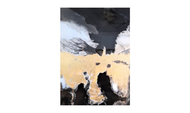 Decorative frame, printing on metal. Abstract black and gold, 34 ' x 23 ' x 2 '