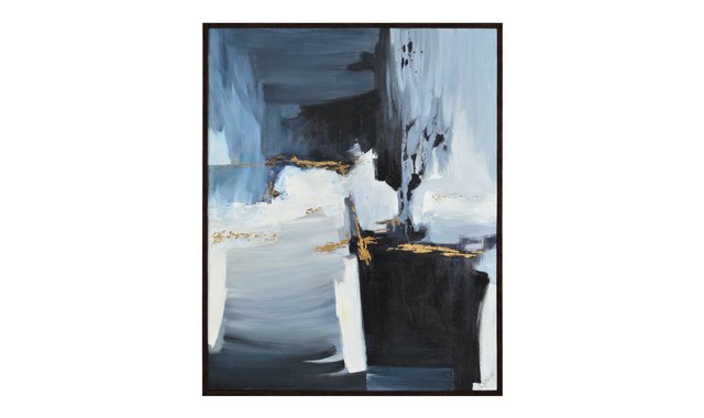 Hand Painted - Canvas - Gold Leaf Accents - Matte Black Frame