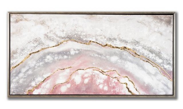Oil painting with glitter and gold foil accents in champagne floater frame 60x30.