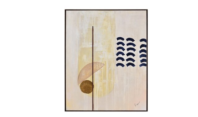 NAVI Style: OL2092 | Dimensions : 24"W X 30"H X 2"D The mid-century modern interior is injected with character when this work of art enters the space. Gold foil embellishment and hand-painted textured painting make for a perfect pair of striking and serene designs. The dark brown flush frame has a warmth that balances out the abstract details of navy blue and gold set on the canvas. Hand-Painted Canvas Texture Gold Leaf Accents Dark Brown Frame 2-Way Hanging