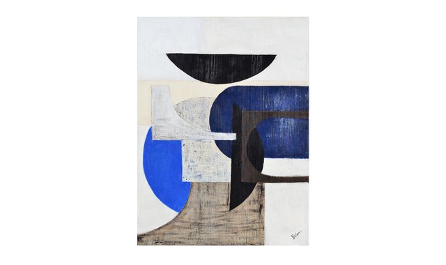 Abstract decorative frame in shades of blue and black with gray background. For modern and contemporary decors.