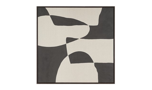 Hand-painted Canvas Textured Solid wood frame Black oak veneer 2-way hanging Make a striking impact in any space with the Altino modern art painting designed by Canadian designer and interior stylist, Arren Williams. 100% hand-painted on a high-quality linen/polyester canvas, it features plenty of texture for visual interest and overlapping geometric black and white shapes to create a bold focal point that demands attention. Hang it horizontally or vertically to deliver a stylish update anywhere it lives. A stunning black oak frame puts the finishing touch on this high-contrast abstract art painting and makes it ready to hang as soon as it arrives in its new home.