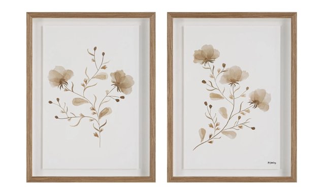 Put ethereal beauty at the top of your project’s must-have list with this pretty pair of floral artwork. Framed in medium walnut and printed in warm shades of brown, this duo of delicate blooms brings a natural touch with timeless charm to any interior.