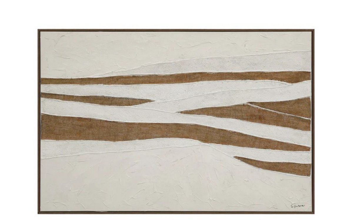 Experience texture and craft in perfect harmony with the Sesamo canvas wall art. Blending hand-painted fabric, gel, and collage, it tells a layered story that’s understated yet captivating. Framed in sleek black oak with flexible 2-way hanging, this piece showcases artistry and depth for a bold statement.