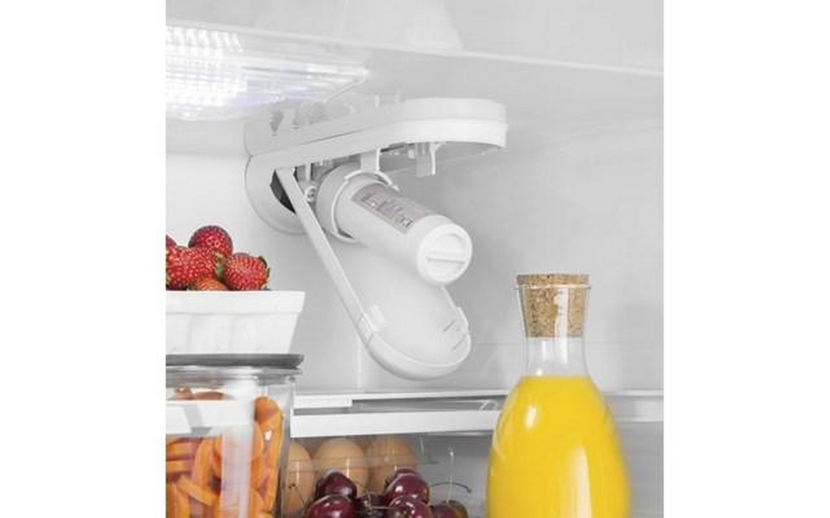 This GE 36-inch french door, bottom freezer refrigerator features internal water dispenser, FrostGuard™ technology, electronic touch controls and door alarm. The internal water dispenser uses XWF replacement filter that delivers filtered water with one touch. The spill-proof shelves with raised edges help contain spills and make clean up quick and easy. The full-width deli drawer allows party trays and larger items to fit easily and remain at the ideal temperature.
