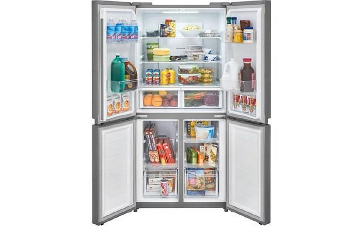 Frigidaire 17.4 cu. ft. 4 door refrigerator with Store-More™ refrigerator bins designed to store more, so you can fit a variety of beverages. Organize and customize your refrigerator for your family's needs with 2 Space Wise™ adjustable glass shelves.