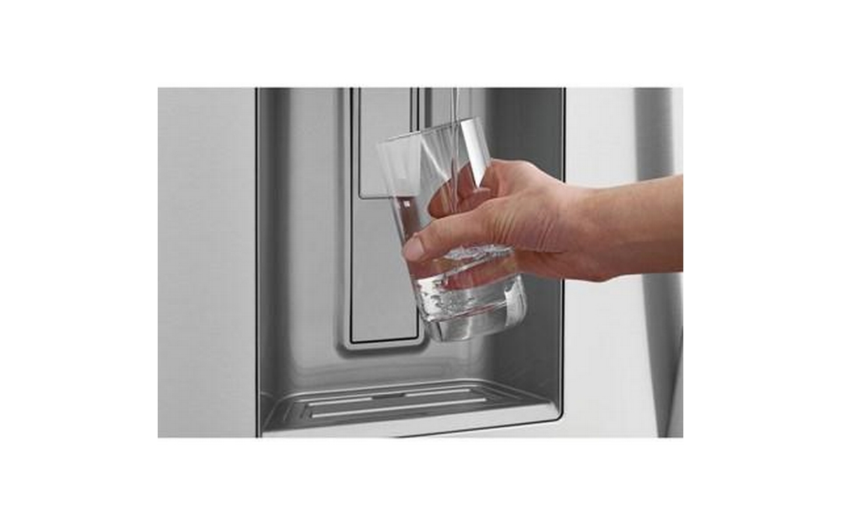 Frigidaire 36" French 3-Door Refrigerator with CrispSeal® Plus Crispers with Auto Humidity that automatically removes excess moisture plus an added ethylene filter reduces the gas emitted by many fruits and vegetables that causes spoiling. This refrigerator features the SpaceWise® Organization System, EvenTemp® Cooling System, PurePour™ Water Filter and Internal Water Dispenser.