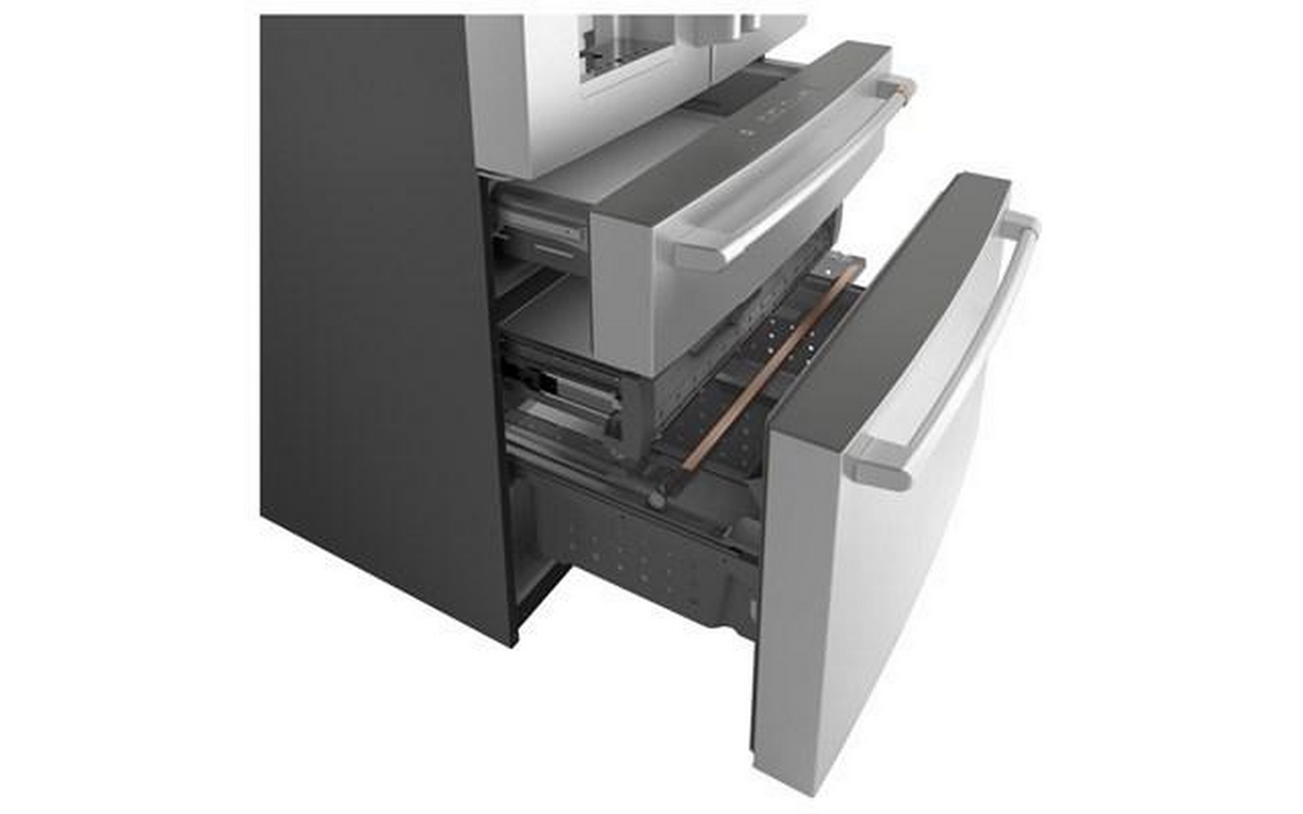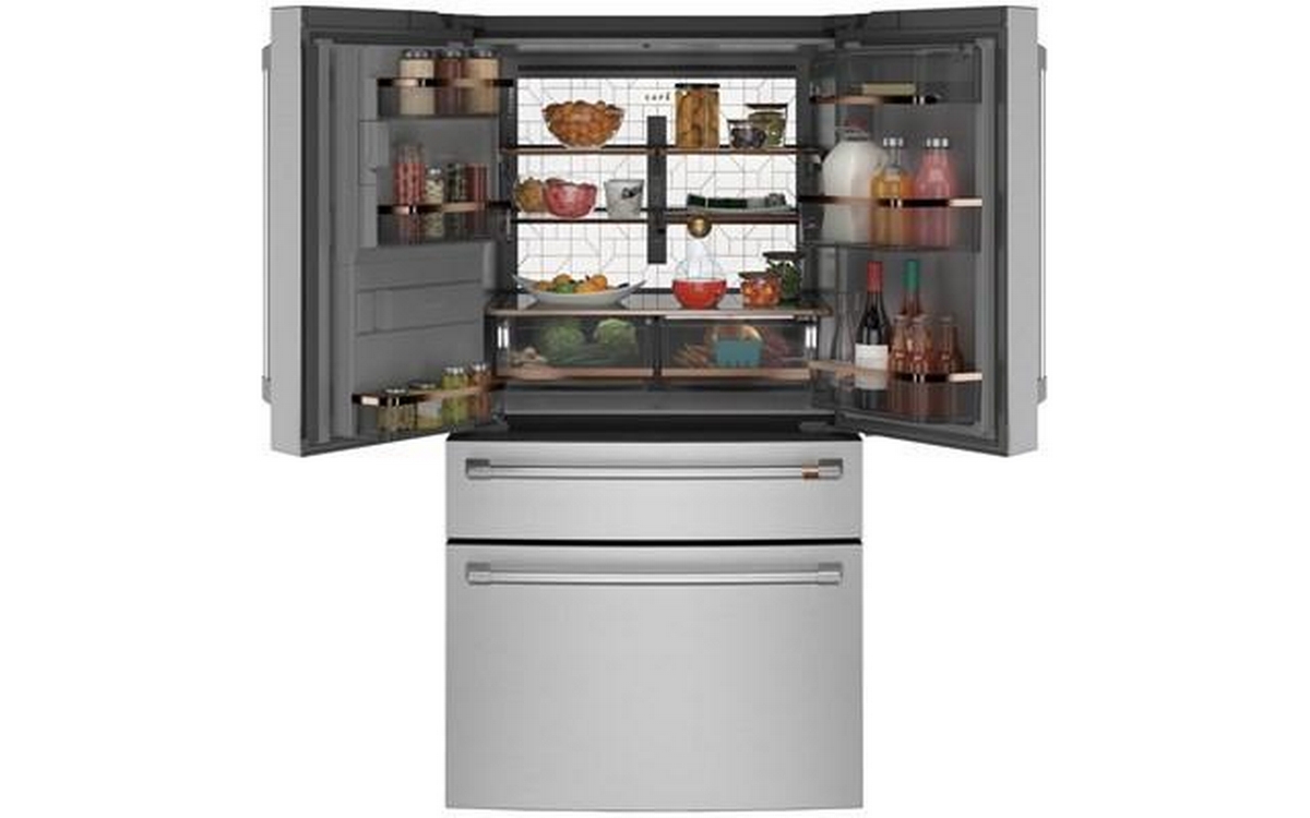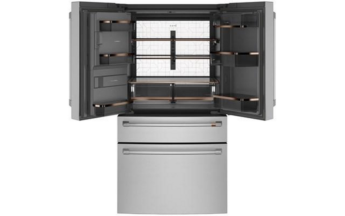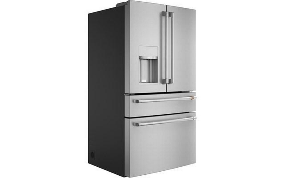 Café™ Energy Star® 27.8 cu. ft. french 4-door refrigerator with easy access, in-the-door icemaker. It features customized temperature settings to suit your needs, the TwinChill™ evaporators temperature system and Wifi connect.