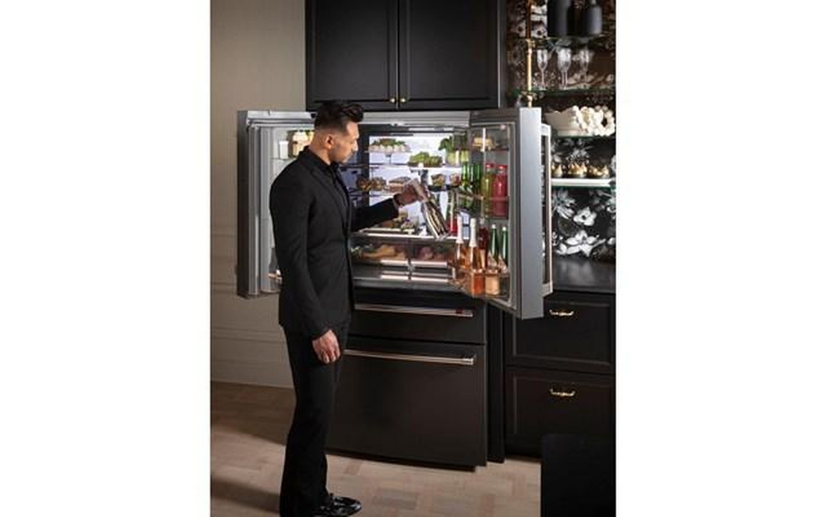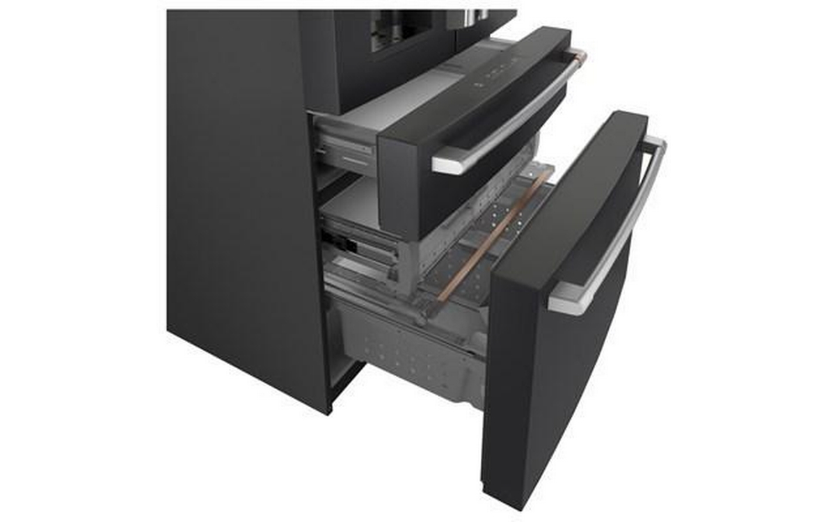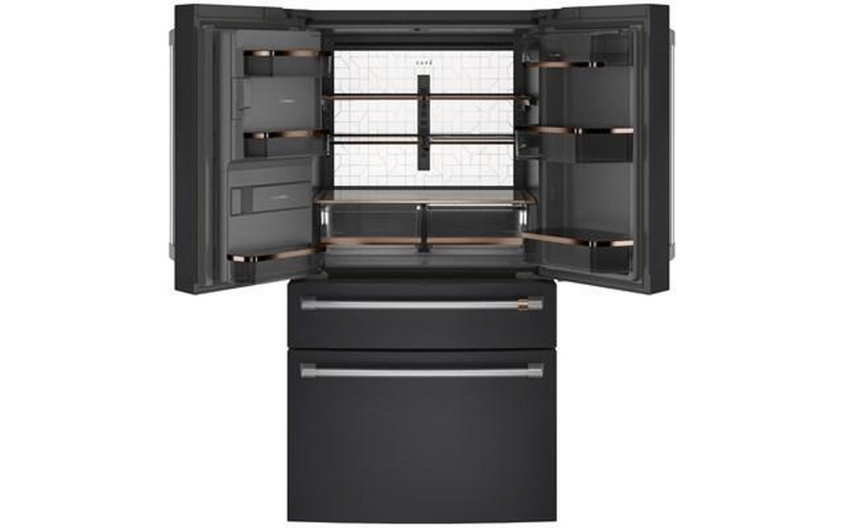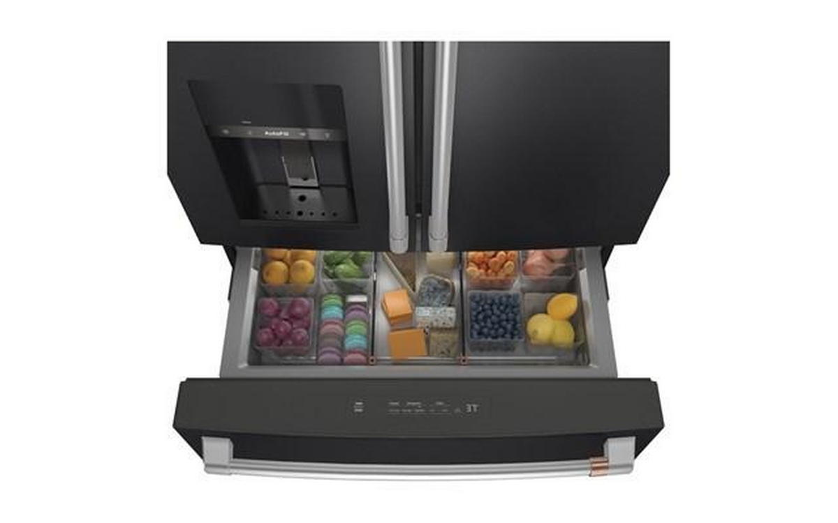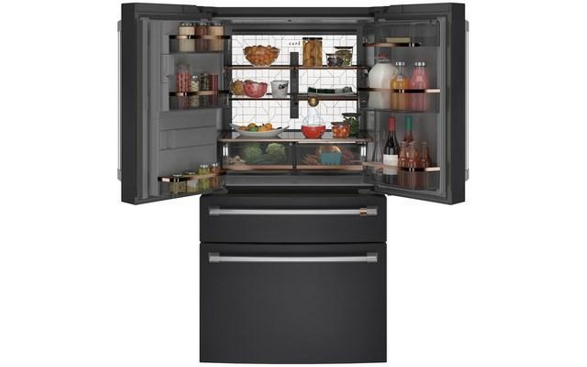 Café™ Energy Star® 27.6 cu. ft. french 4-door refrigerator with easy access, in-the-door icemaker. It features customized temperature settings to suit your needs, the TwinChill™ evaporators temperature system and Wifi connect.