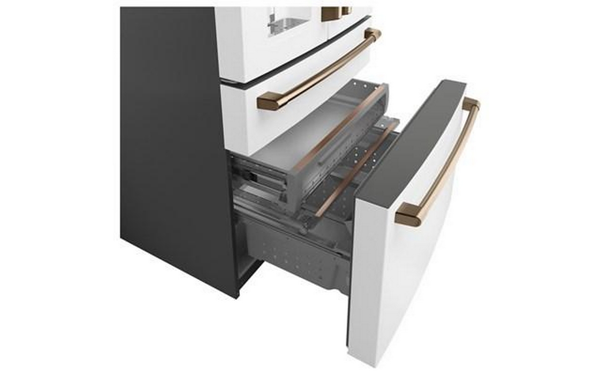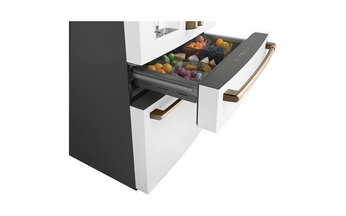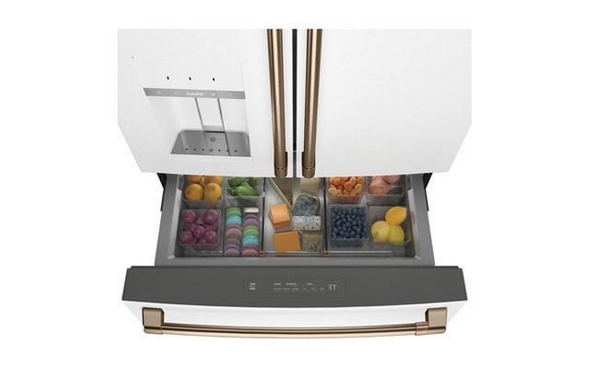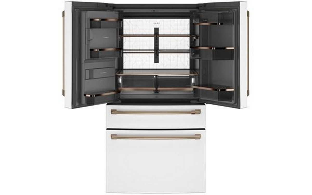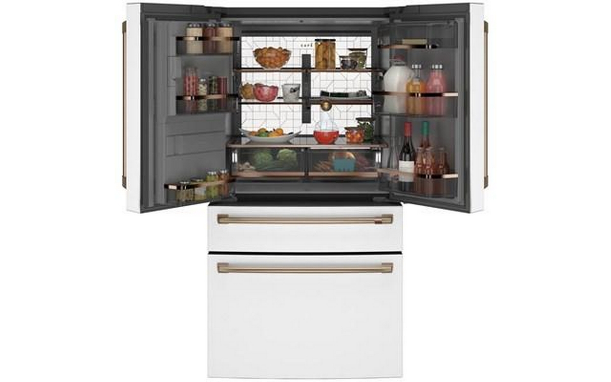Café™ Energy Star® 27.6 cu. ft. french 4-door refrigerator with easy access, in-the-door icemaker. It features customized temperature settings to suit your needs, the TwinChill™ evaporators temperature system and Wifi connect.