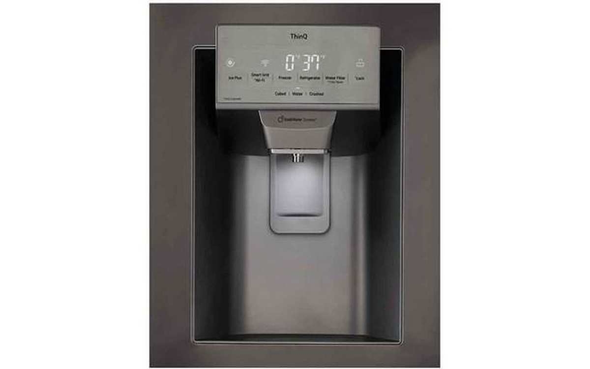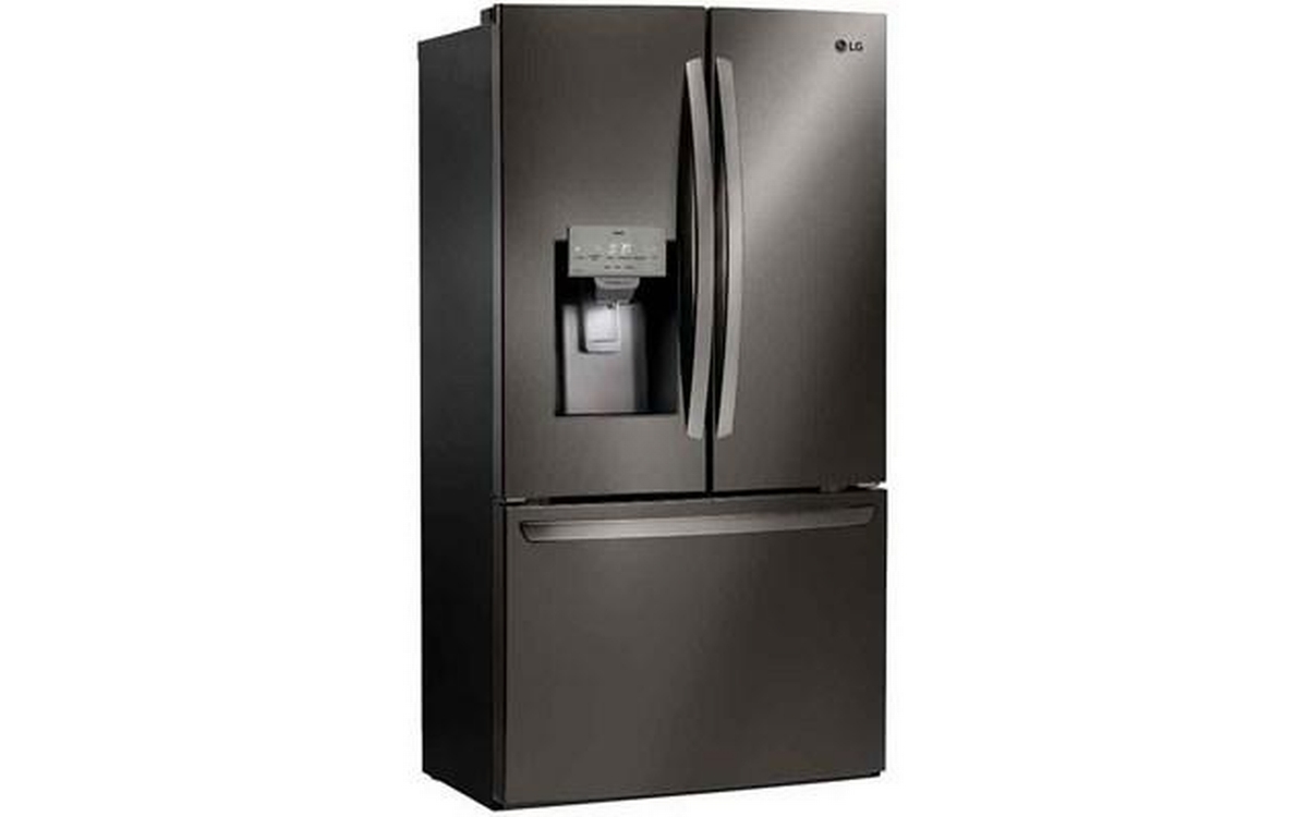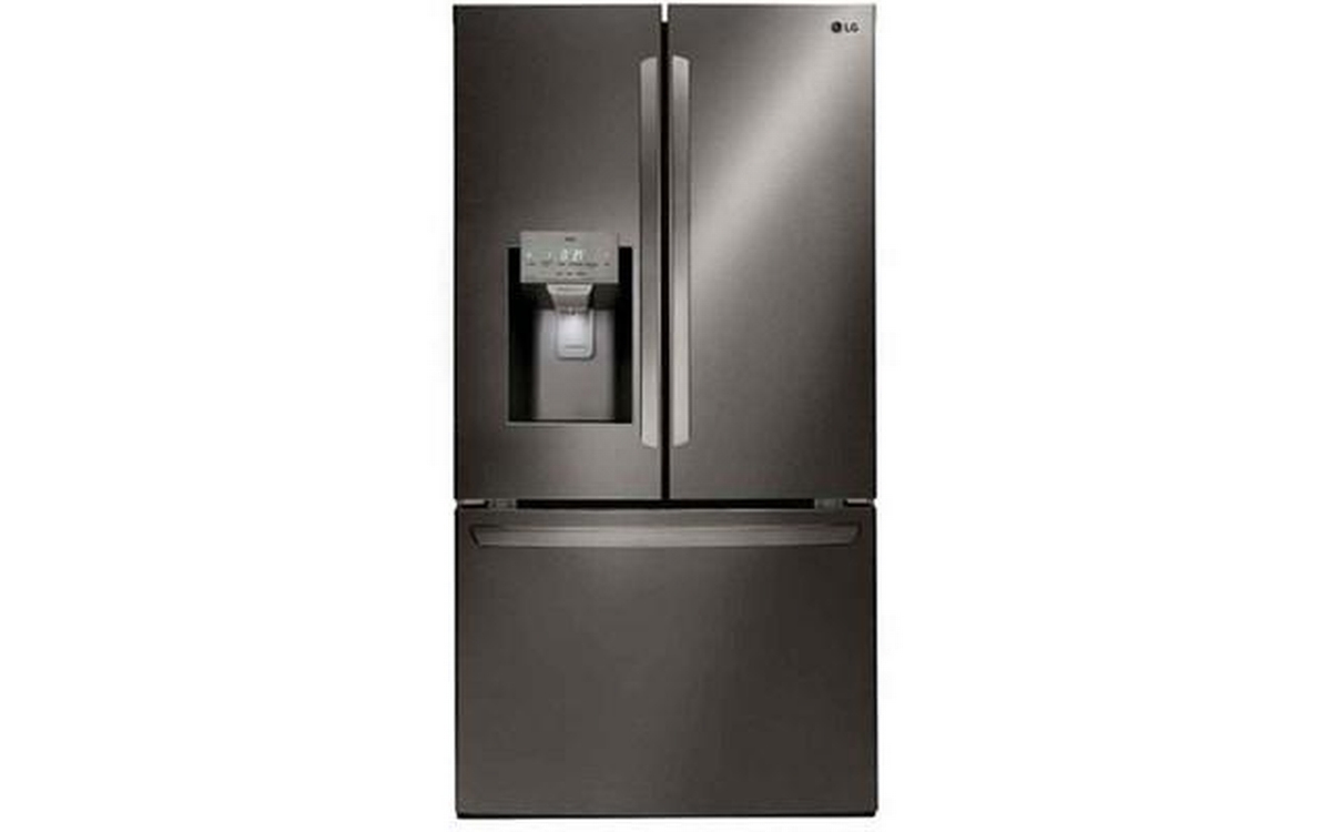 LG 27.7 cu. ft. french 3-door refrigerator features a door alarm, an external water and ice dispensing system, Smart Diagnosis technology and door alarm.