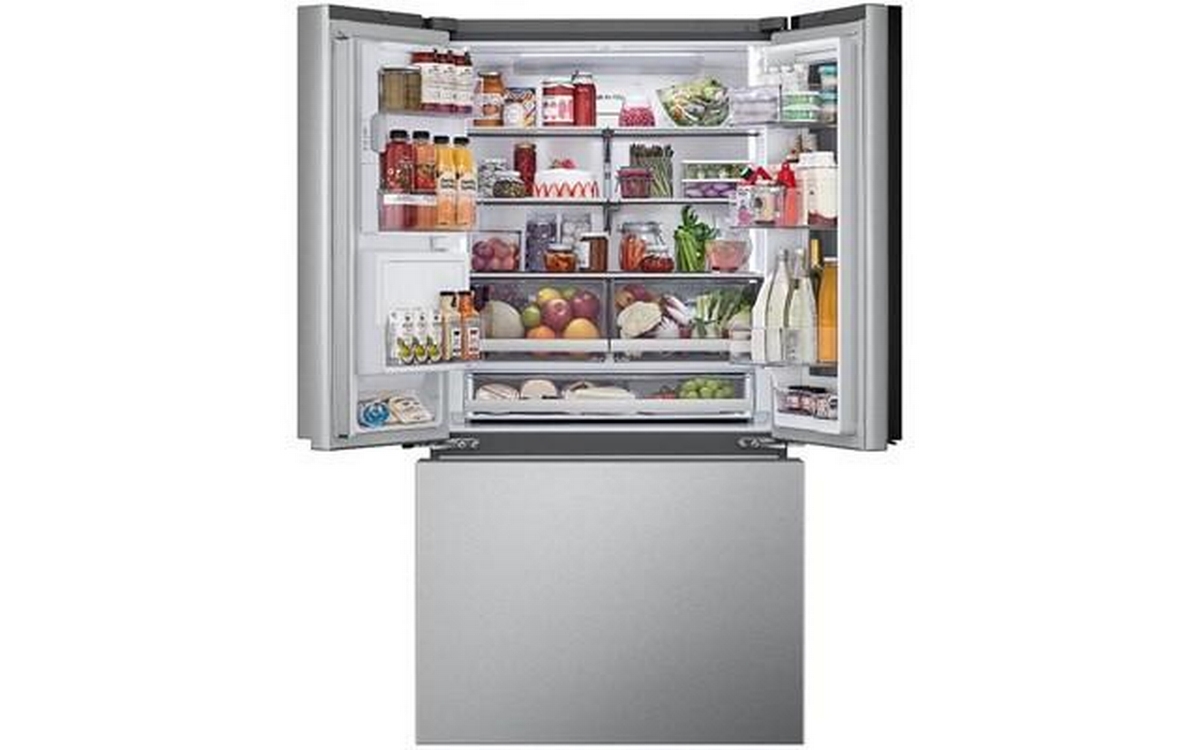 This LG Smart Mirror InstaView® Counter-Depth MAX™ French door refrigerator delivers an ultra-large capacity of a standard-depth fridge for a seamless, built-in look. It offers four types of ice, a UVNano™ smooth touch dispenser, and a PrintProof™ finish.