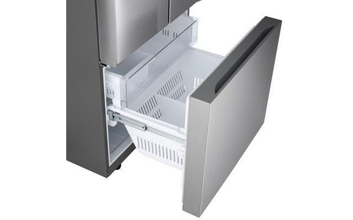 LG 33-inch 25.1 cu. ft. 3-door french door refrigerator featuring the Smart Cooling Plus system and SmartDiagnosis. Control key features and receive notification with the ThinQ® app.