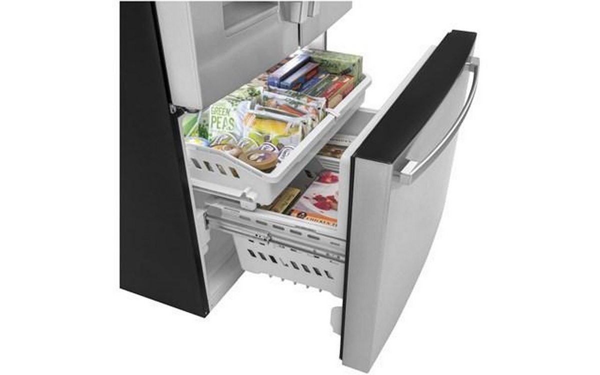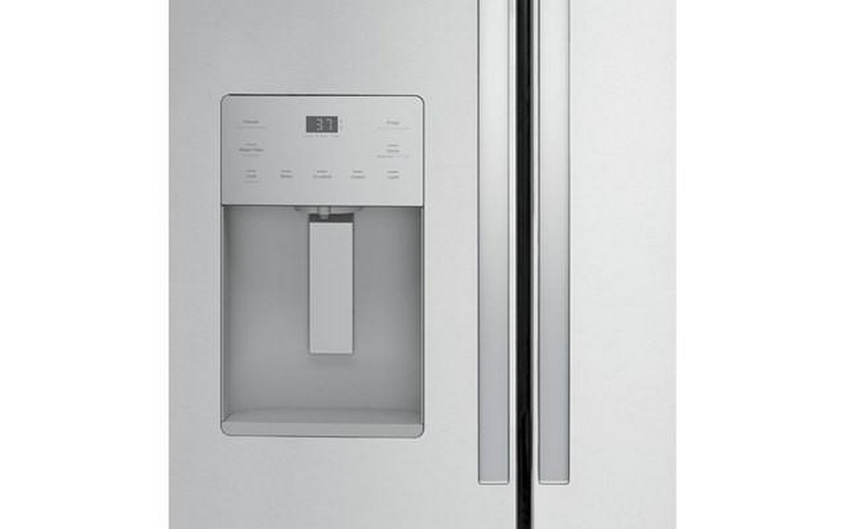 This 36-inch wide GE, counter-depth french 3-door refrigerator is equipped with exterior ice maker. This refrigerator also features internal controls with actual-temperature display, advanced water filtration and a 20.6 cu.ft. capacity.
