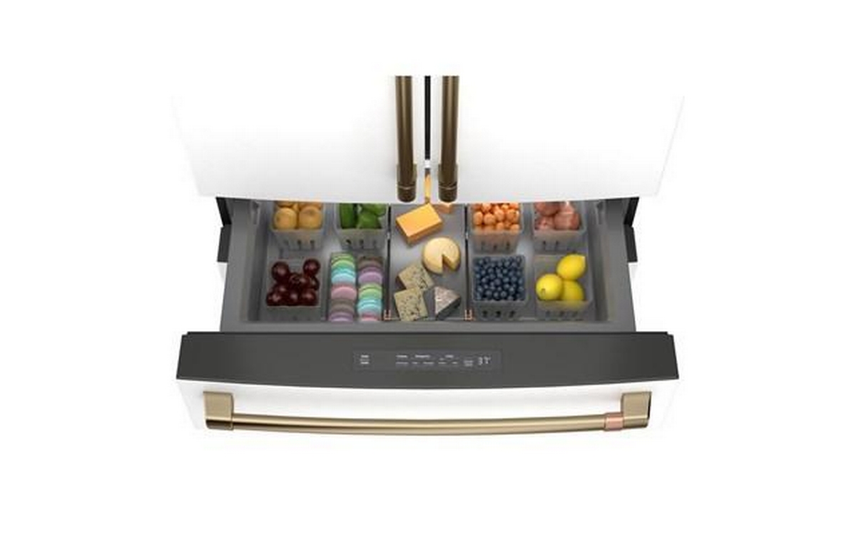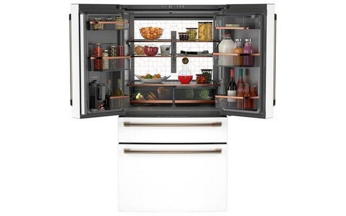 Café™ ENERGY STAR® 23.2 Cu. Ft. Smart Counter-Depth 4-Door French-Door Refrigerator With Dual-Dispense AutoFill Pitcher. Get a built-in look in the kitchen with a counter depth refrigerator that fits almost flush with the rest of the cabinets and counters. Enjoy chilled, delicious water anytime with a pitcher that automatically refills when placed on its docking station. Two curated pouring options give you quick access to filtered water.