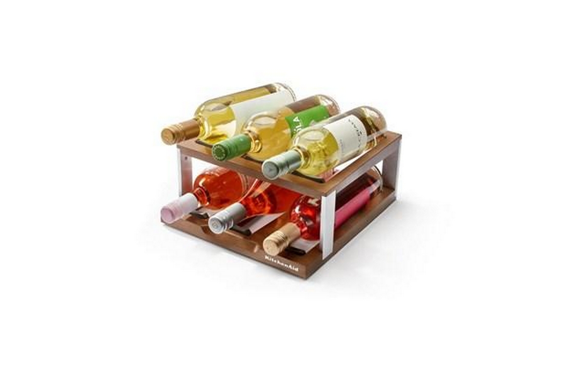 allows you to store and serve 6 standard wine bottles or cold drinks at the optimal temperature. This stylish caddy with wood-look finish goes from fridge to counter or table with ease.