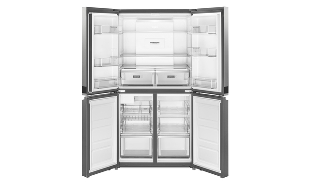 This 4 door refrigerator is more than sleek. Four compartments help keep fresh and frozen groceries organized and accessible.