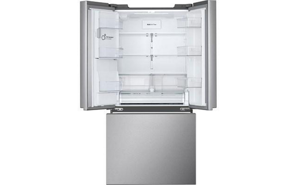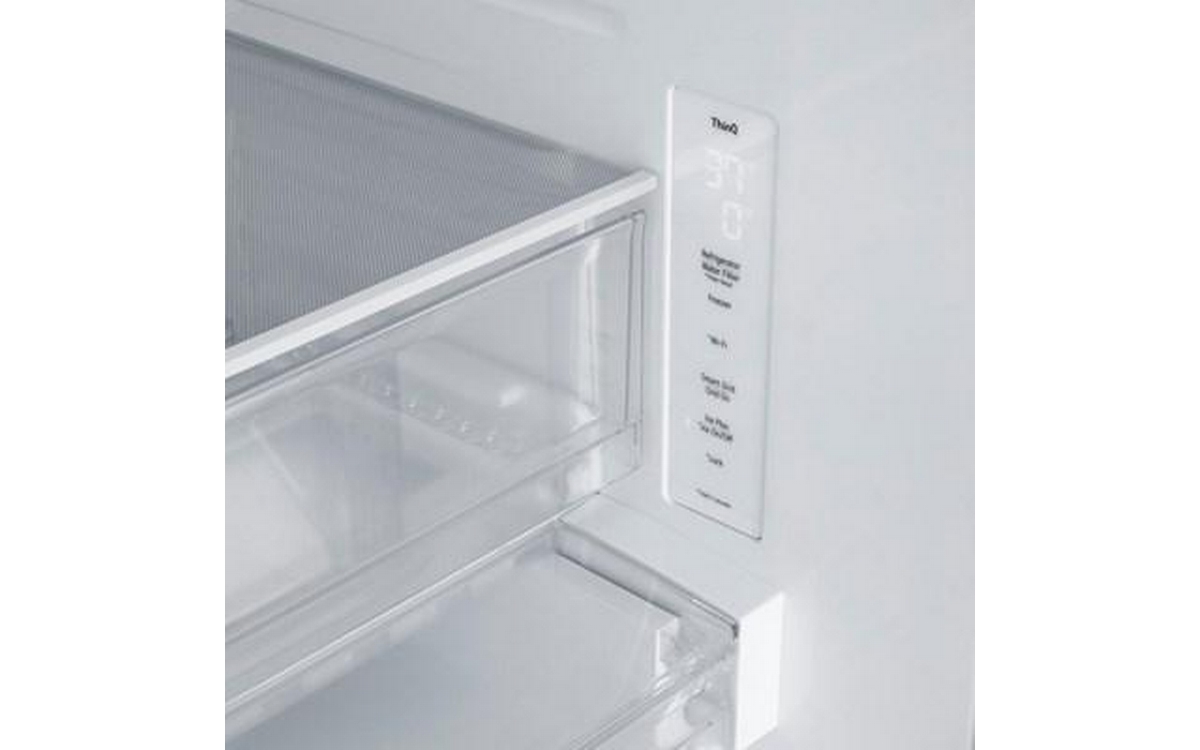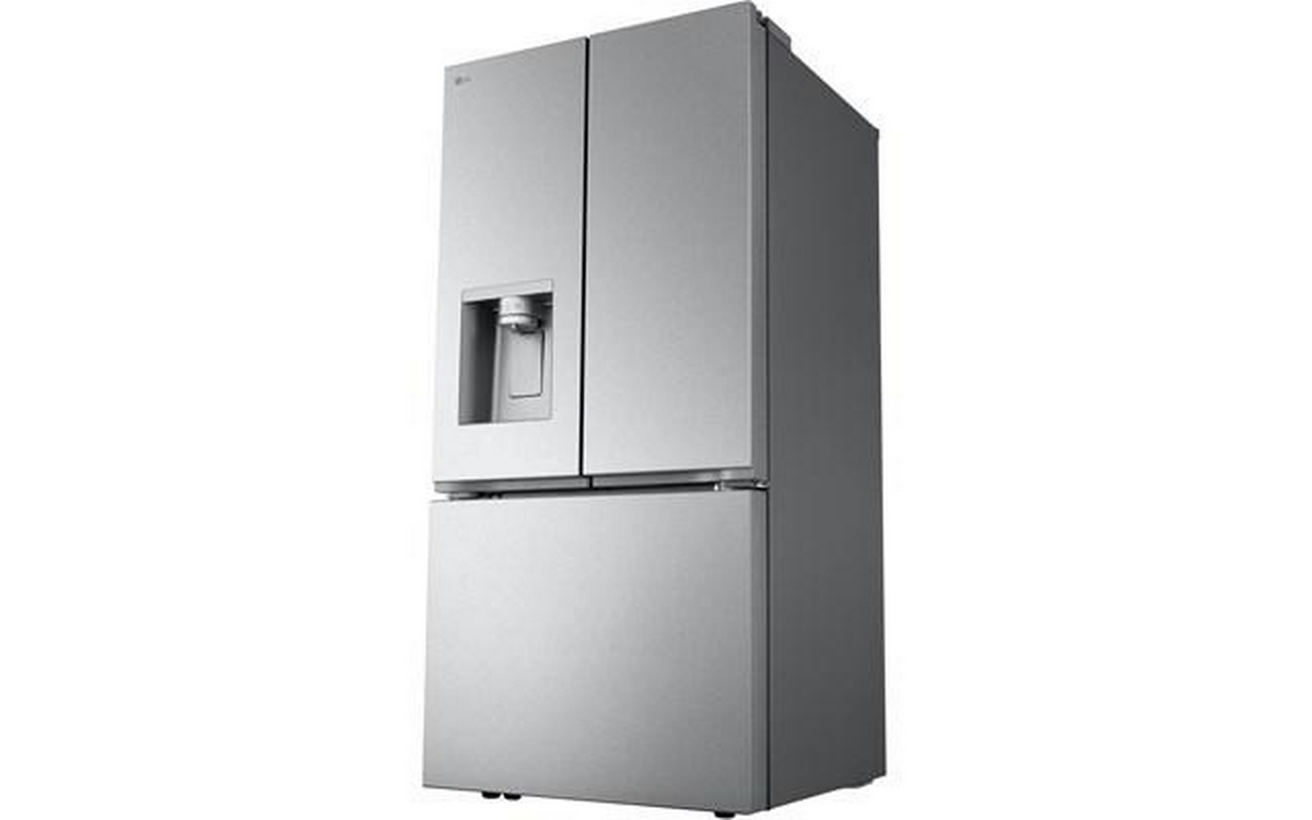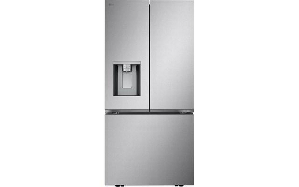 LG 33-inch 24.2 cu. ft. 3-door french door refrigerator with Slim SpacePlusTM external ice and water dispenser. This refrigerator features the Smart Cooling Plus system and SmartDiagnosis. Control key features and receive notification with the ThinQ® app.