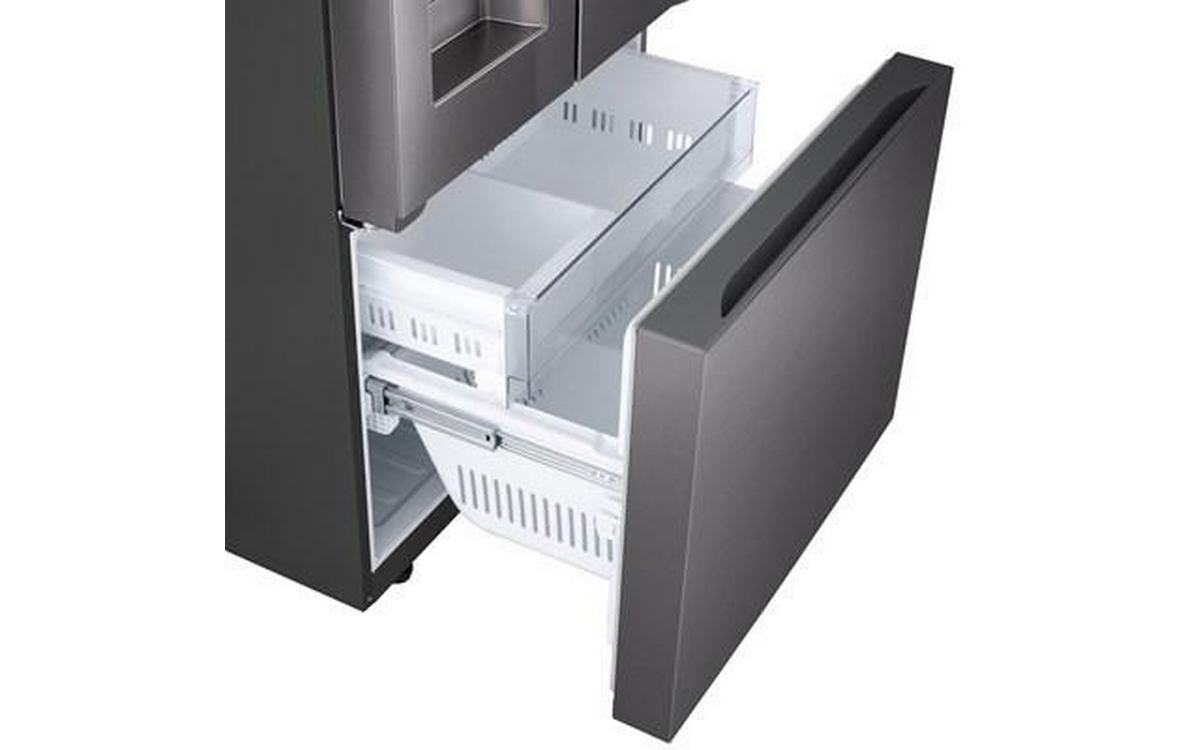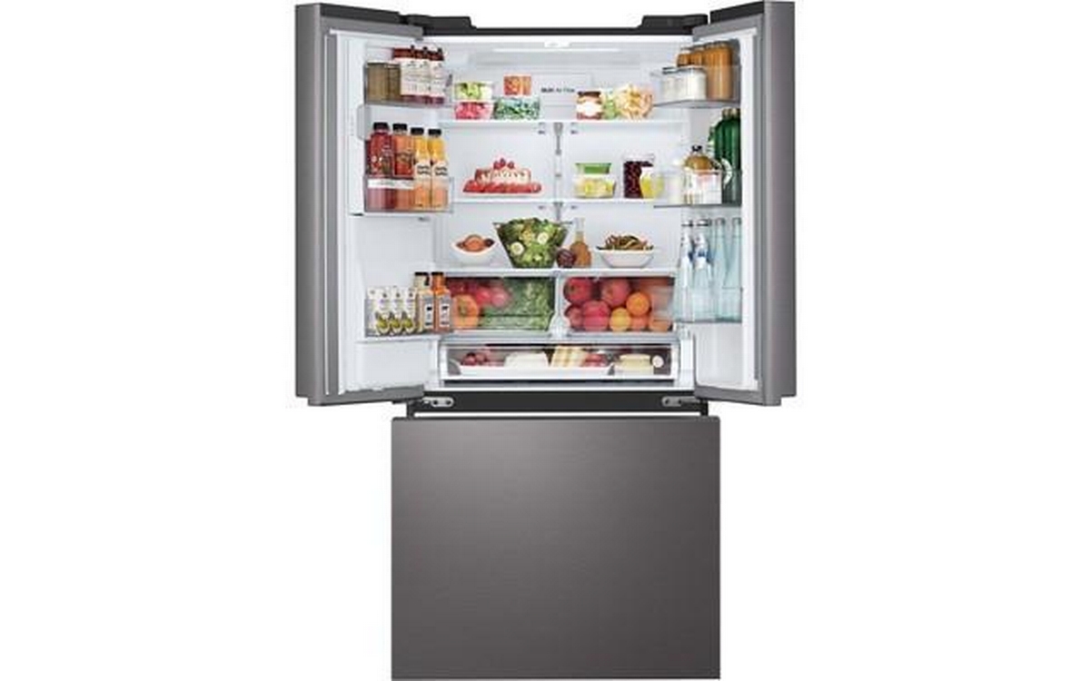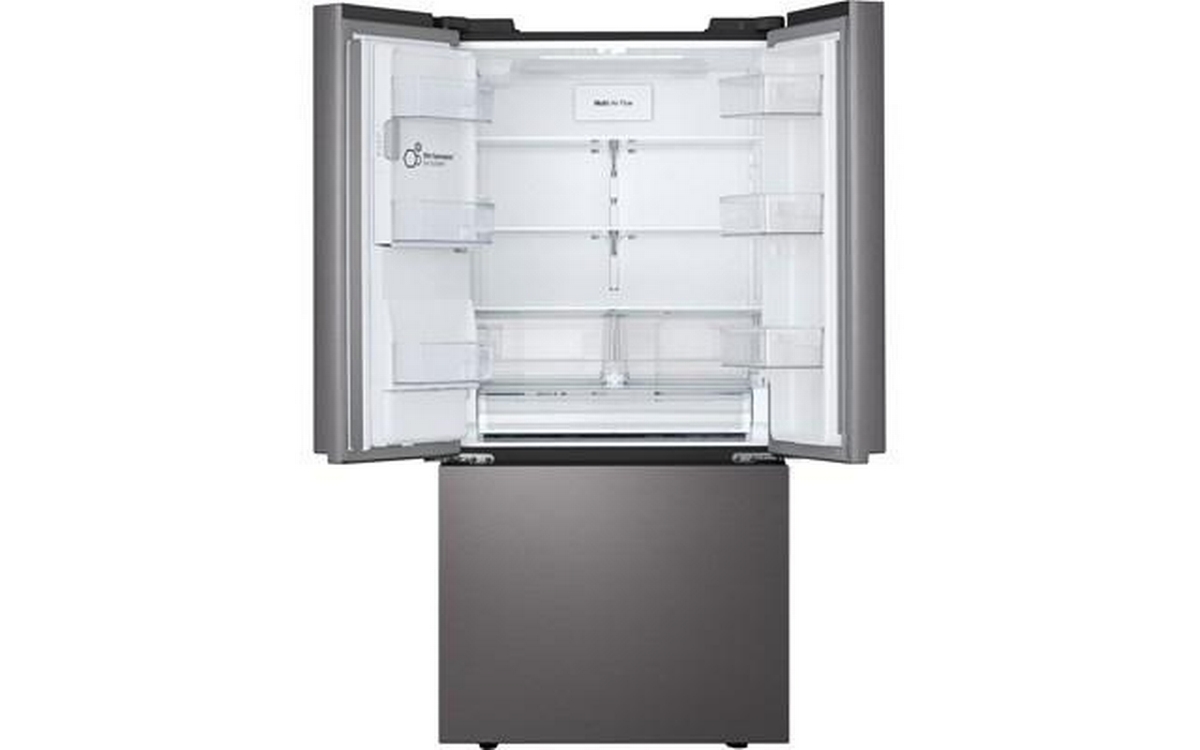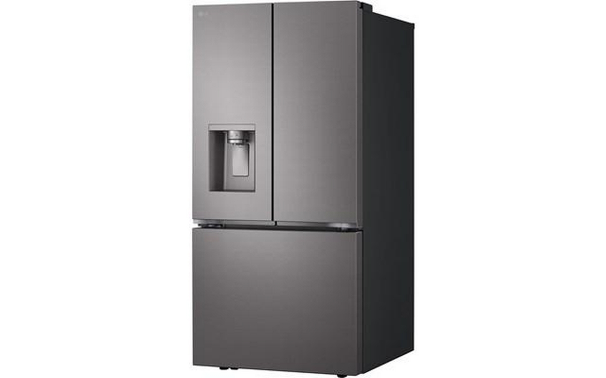 LG 33-inch 24.2 cu. ft. 3-door french door refrigerator with Slim SpacePlusTM external ice and water dispenser. This refrigerator features the Smart Cooling Plus system and SmartDiagnosis. Control key features and receive notification with the ThinQ® app.