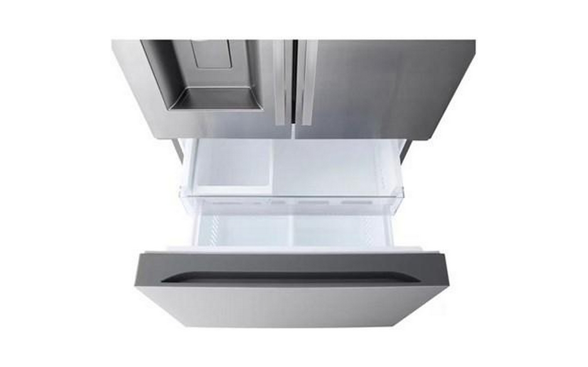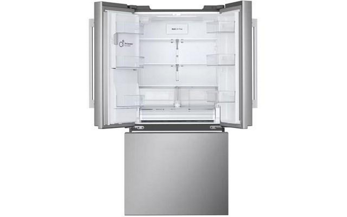 LG 25 cu.ft. 3-Door French Door Refrigerator with Hybrid Handle Design and External Ice and Water Dispenser. Dual ice makers dispense ice from the door and the freezer compartment to MAX out your chill, with your choice of cubed or crushed ice on demand, so you never run out. This added ice storage helps ensure that you have extra ice on hand for those hot summer days or when entertaining large parties.