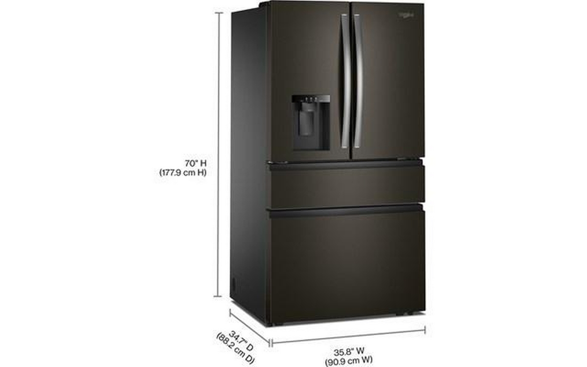 Whirlpool 36-inch french 4-door refrigerator with external water and ice dispensing system.