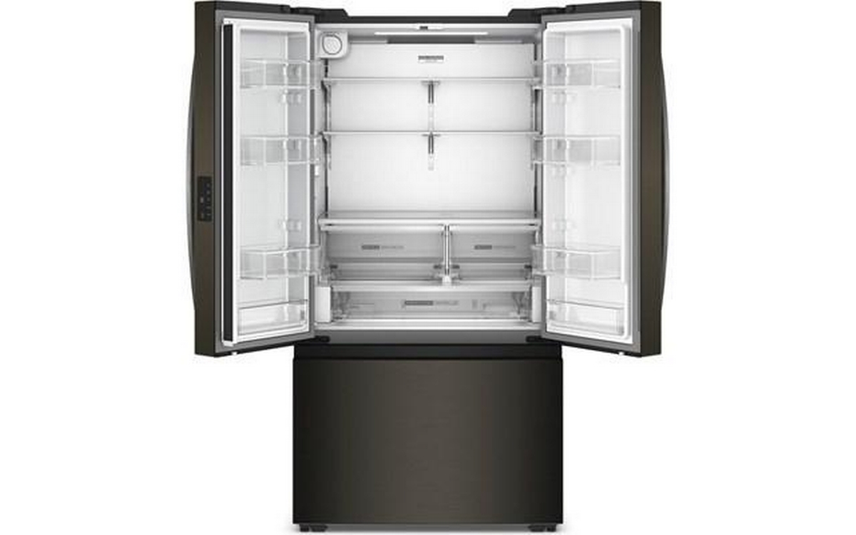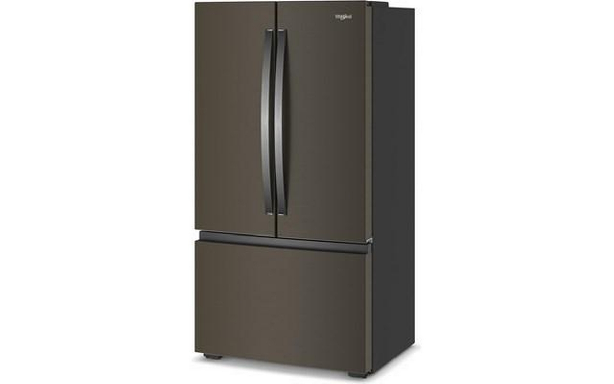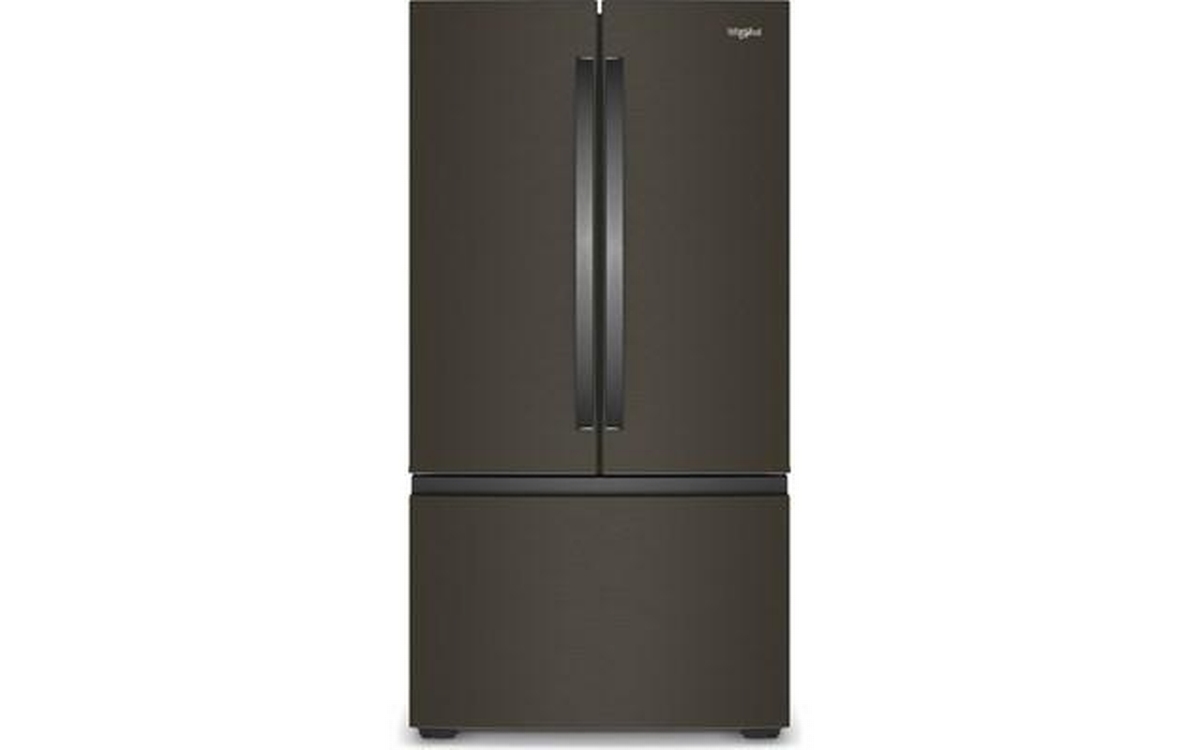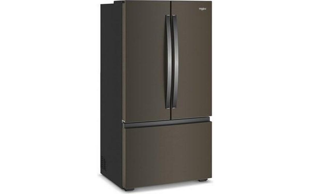 Whirlpool french 3-door refrigerator features glass shelves, clear door bins and a total capacity of 24 cu. ft.