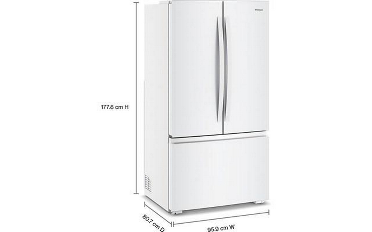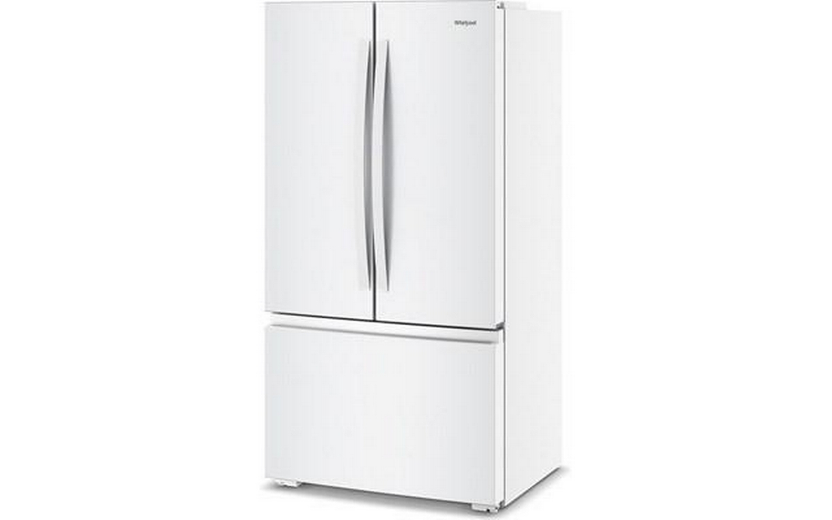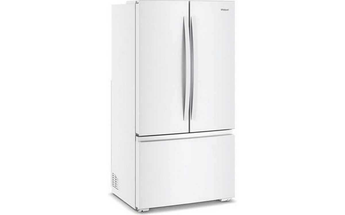 Whirlpool french 3-door refrigerator features glass shelves, clear door bins and a total capacity of 24 cu. ft.