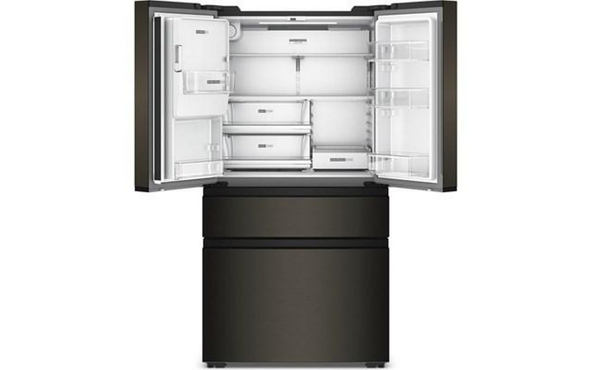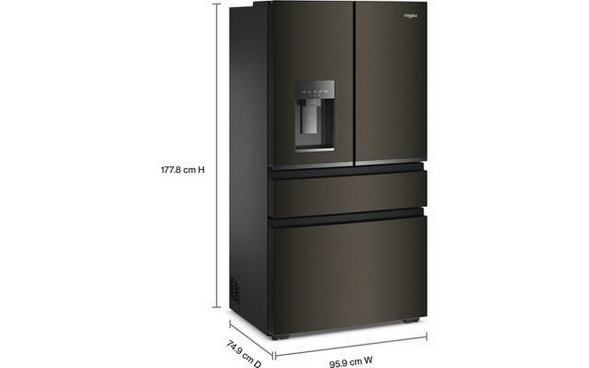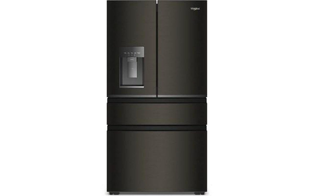 Whirlpool french 4-door refrigerator features glass shelves, clear door bins and a total capacity of 22 cu. ft.
