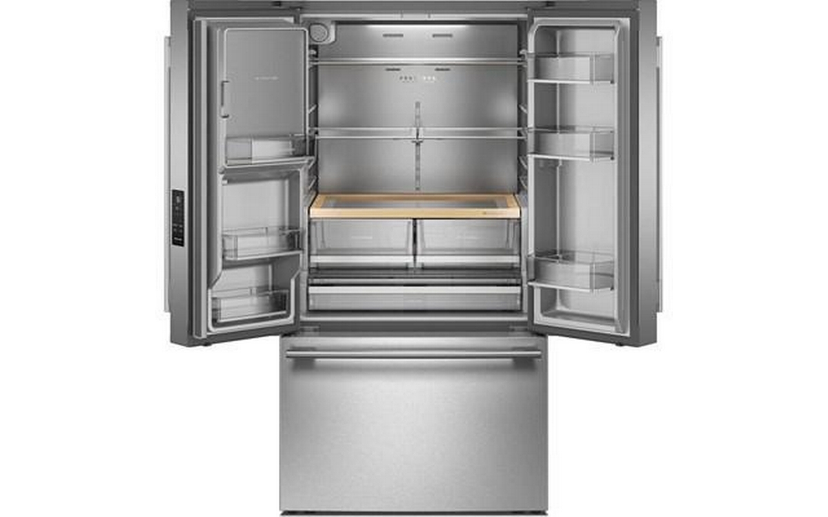 The KitchenAid® 30 cu. ft. French Door Refrigerator with Exterior Water and Ice gives you the capacity and organization you need to fit everything from your last farmer's market haul—without losing sight of it. It features a Wood-Look Sliding Storage Tray that keeps serving platters at the ready, and Large Capacity Ice Production that delivers ice right when you want it.