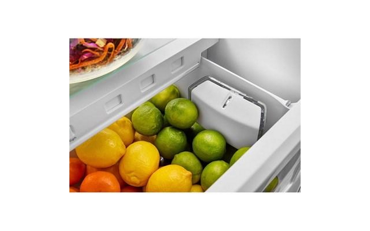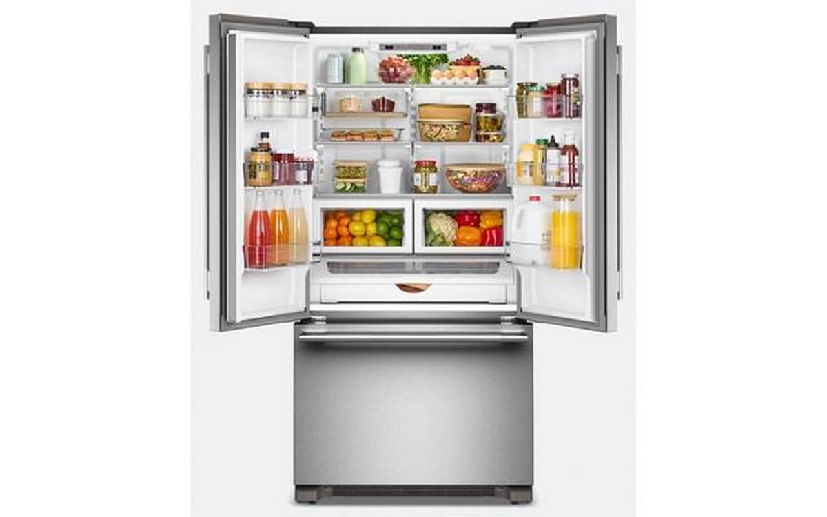 KitchenAid french 3-door refrigerator with crisper drawers, interior lighting and a total capacity of 22 cu. ft.