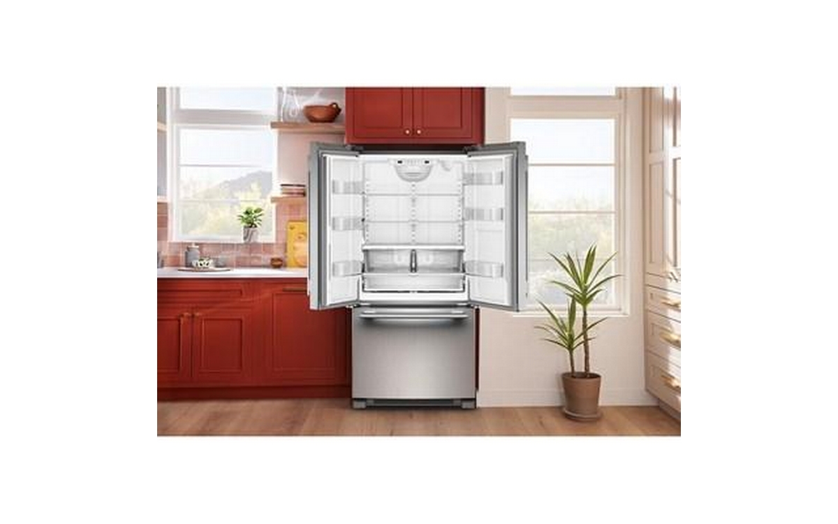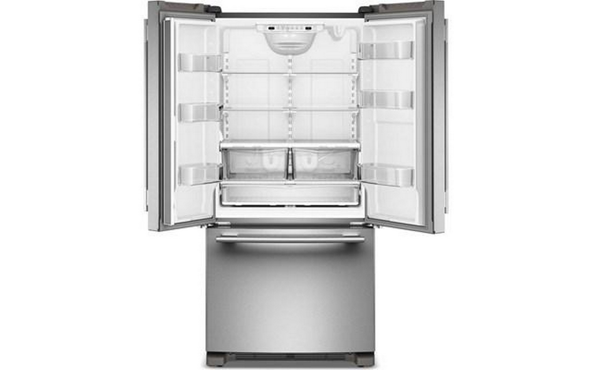 KitchenAid french 3-door refrigerator with crisper drawers, glass shelves and a total capacity of 22 cu. ft.