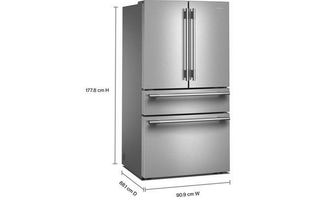 KitchenAid 36-Inch, 30 Cu. Ft. French 3-Door Refrigerator With Interior Water Dispenser And Ice Maker - KRMF336SPS