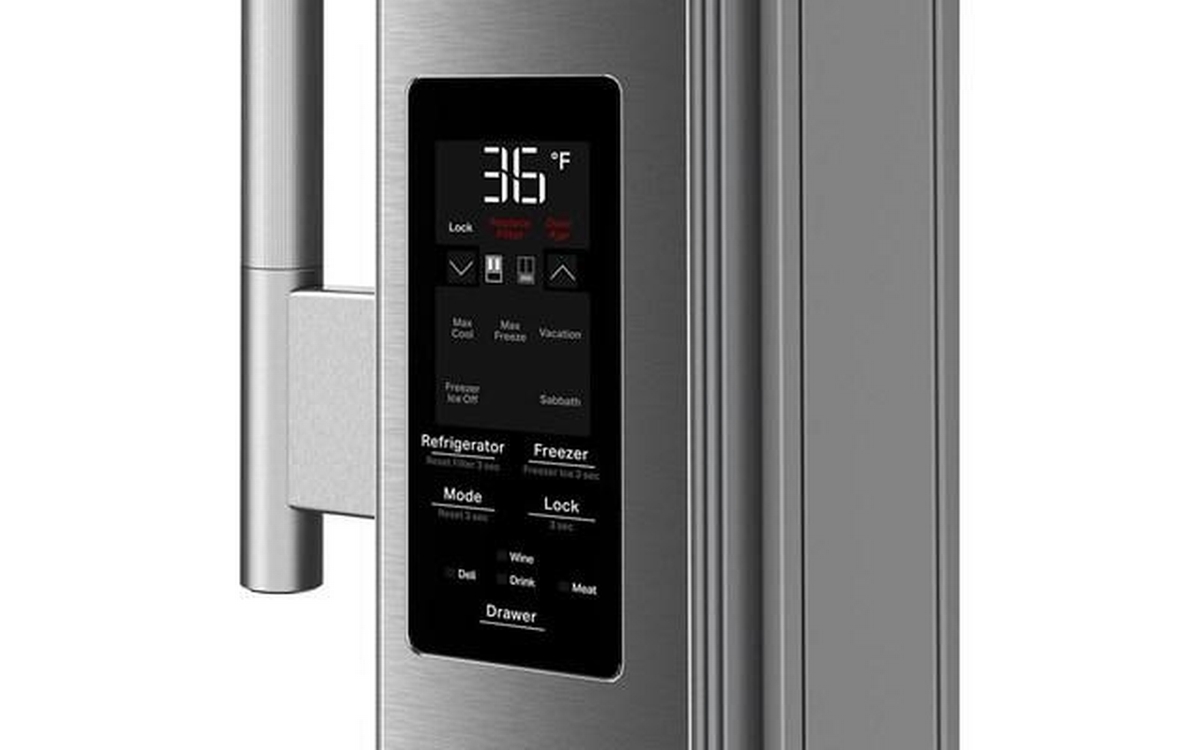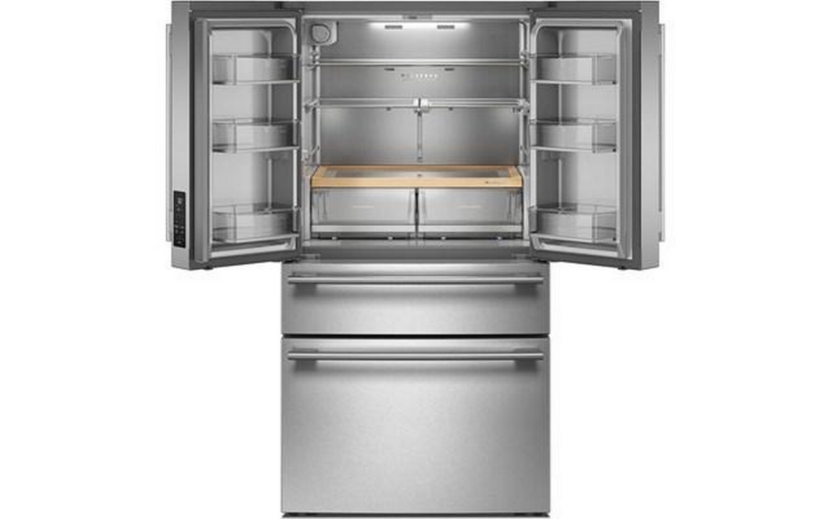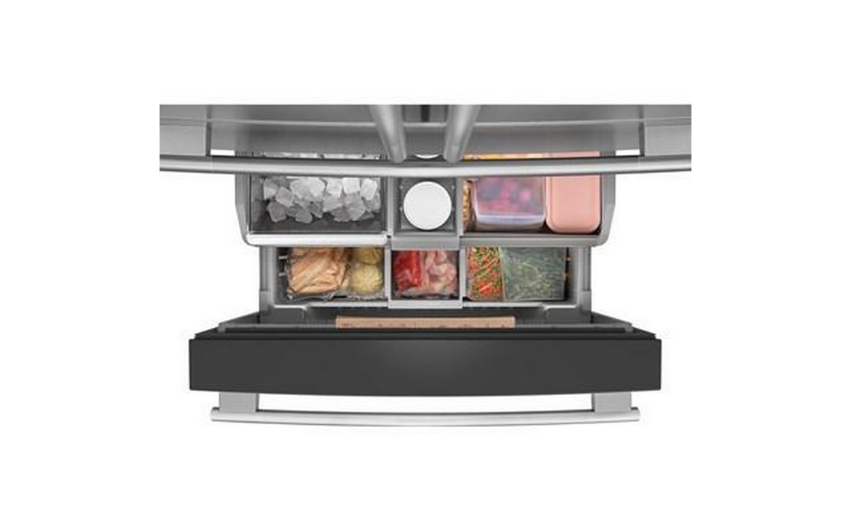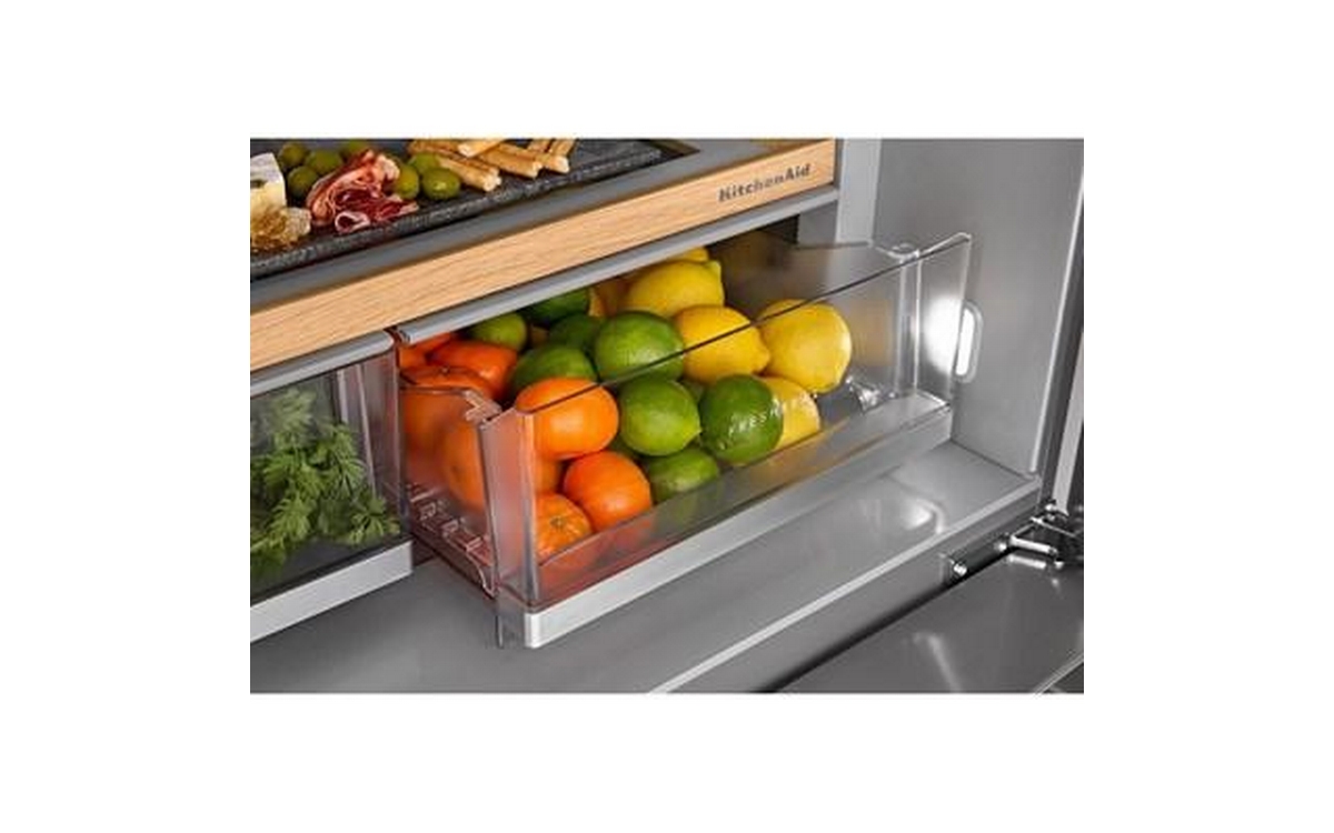 The 30 cu. ft. French Door Refrigerator with Interior Water and Ice and FreshChill™ Full-Width Refrigerated Drawer gives you the capacity and organization you need to fit everything from your last farmer's market haul—without losing sight of it. You'll also get a Full-Width Refrigerated Drawer that lets you choose which temperature you want your items set at, and the Wood-Look Sliding Storage Tray that keeps serving platters at the ready.