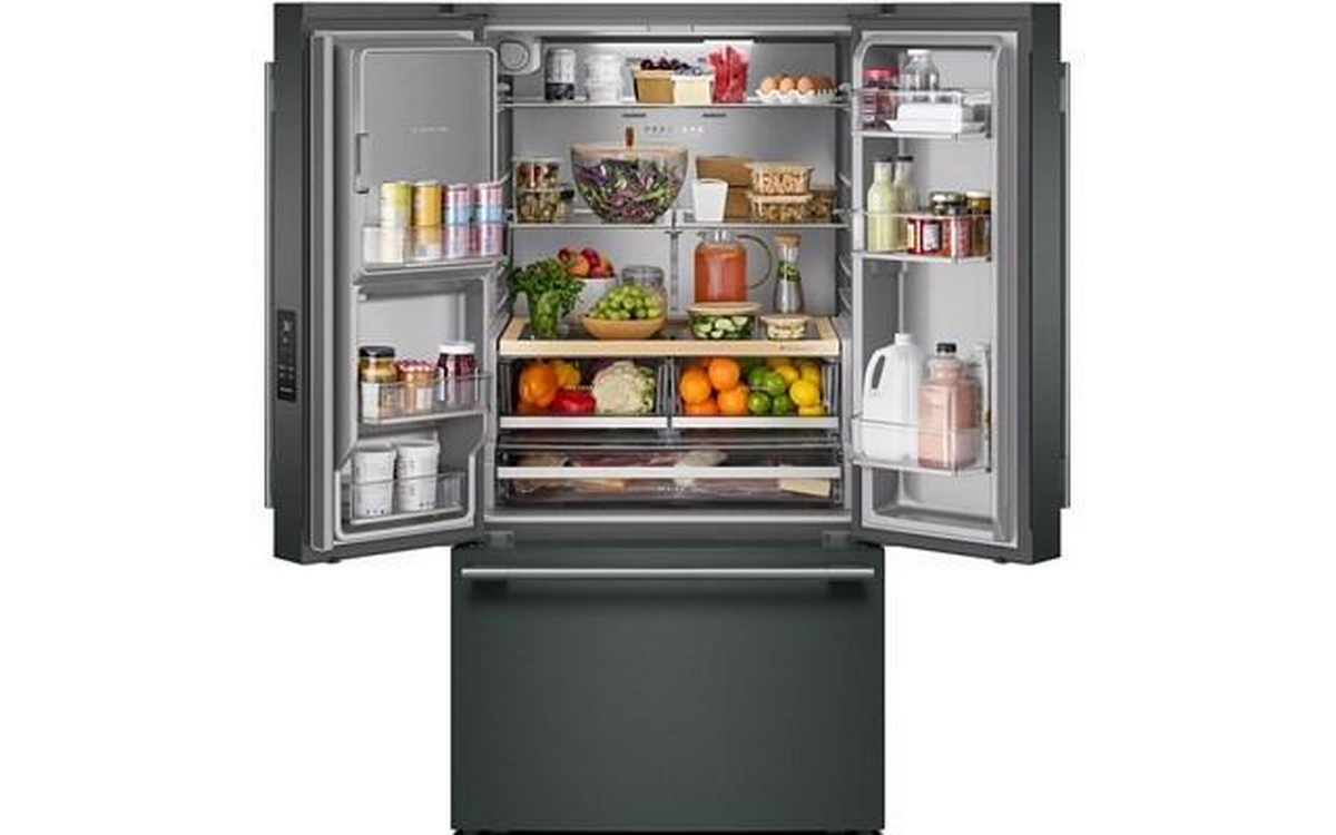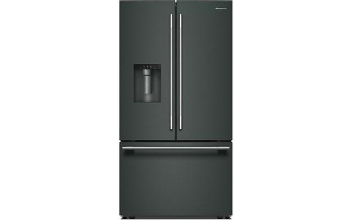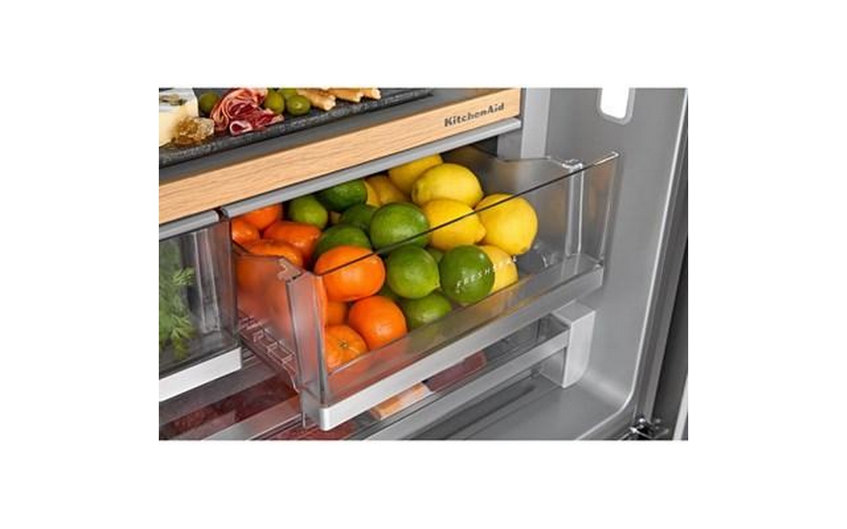 The KitchenAid® 30 cu. ft. French Door Refrigerator with Exterior Water and Ice gives you the capacity and organization you need to fit everything from your last farmer's market haul—without losing sight of it. It features a Wood-Look Sliding Storage Tray that keeps serving platters at the ready, and Large Capacity Ice Production that delivers ice right when you want it.