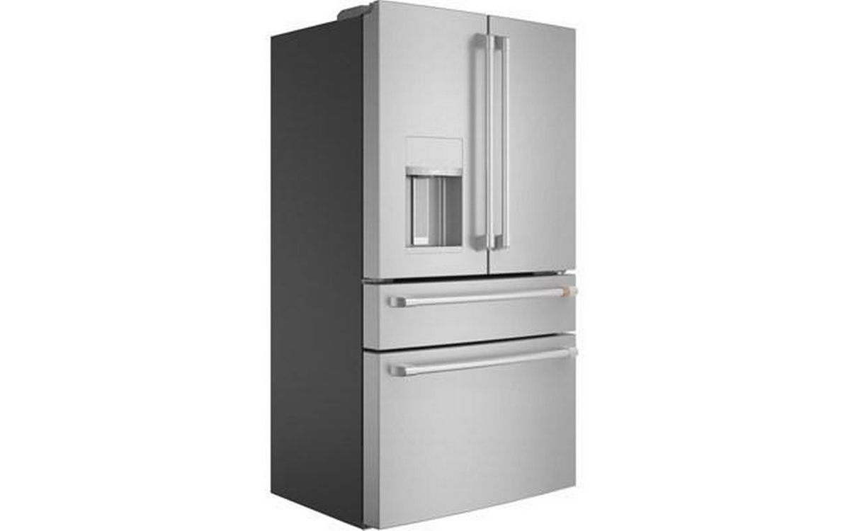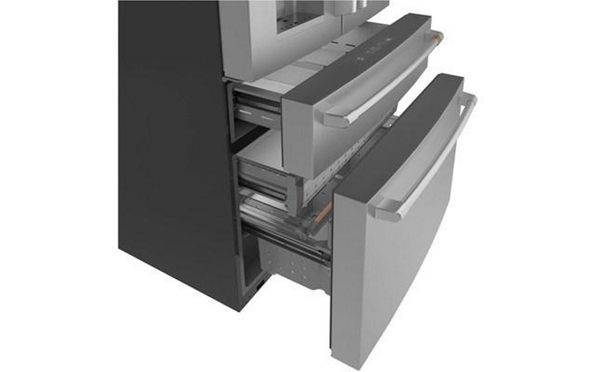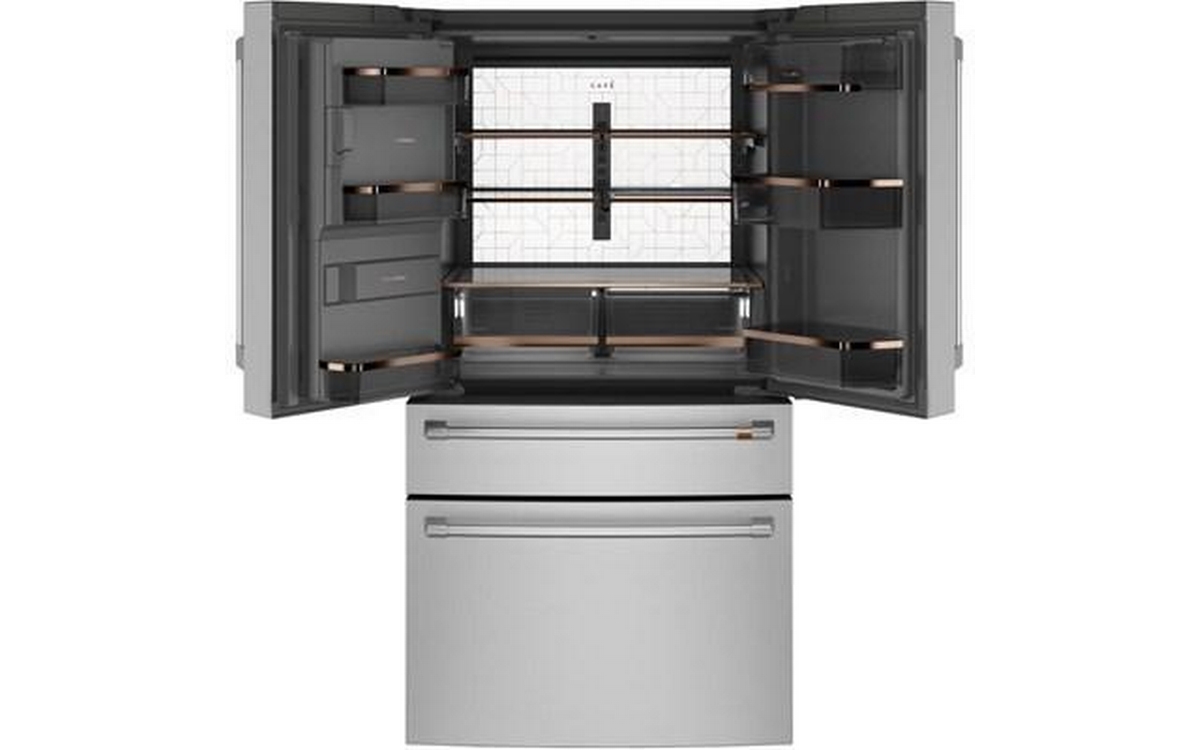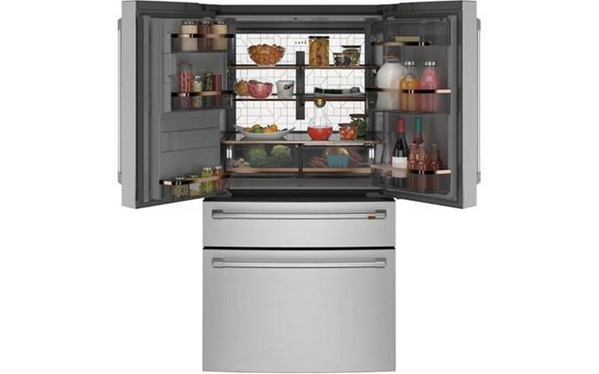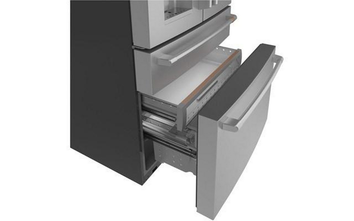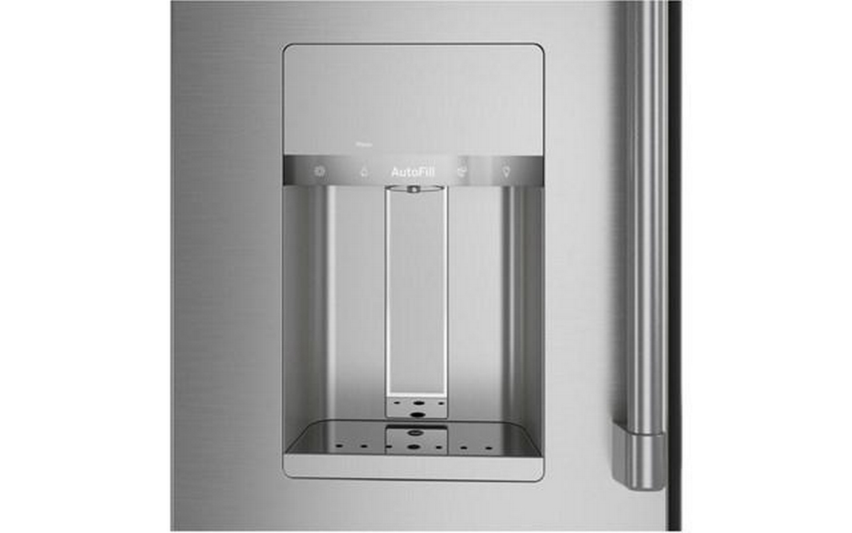 Café™ 22.3 cu.ft. smart counter-depth 4-door refrigerator. Enjoy the flexibility of a Convertible Drawer with Soft Freeze with settings as low as 23 degrees or as high as 42 degrees, and keep items organized with sliding glass dividers. Relish the bright, uniform light of an LED light wall that spans the back wall of the refrigerator, illuminating the fresh food section so every item is easy to find. Effortlessly fill containers with filtered water by simply pressing the AutoFill button which uses sensors to dispense the perfect amount every time.