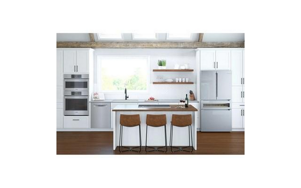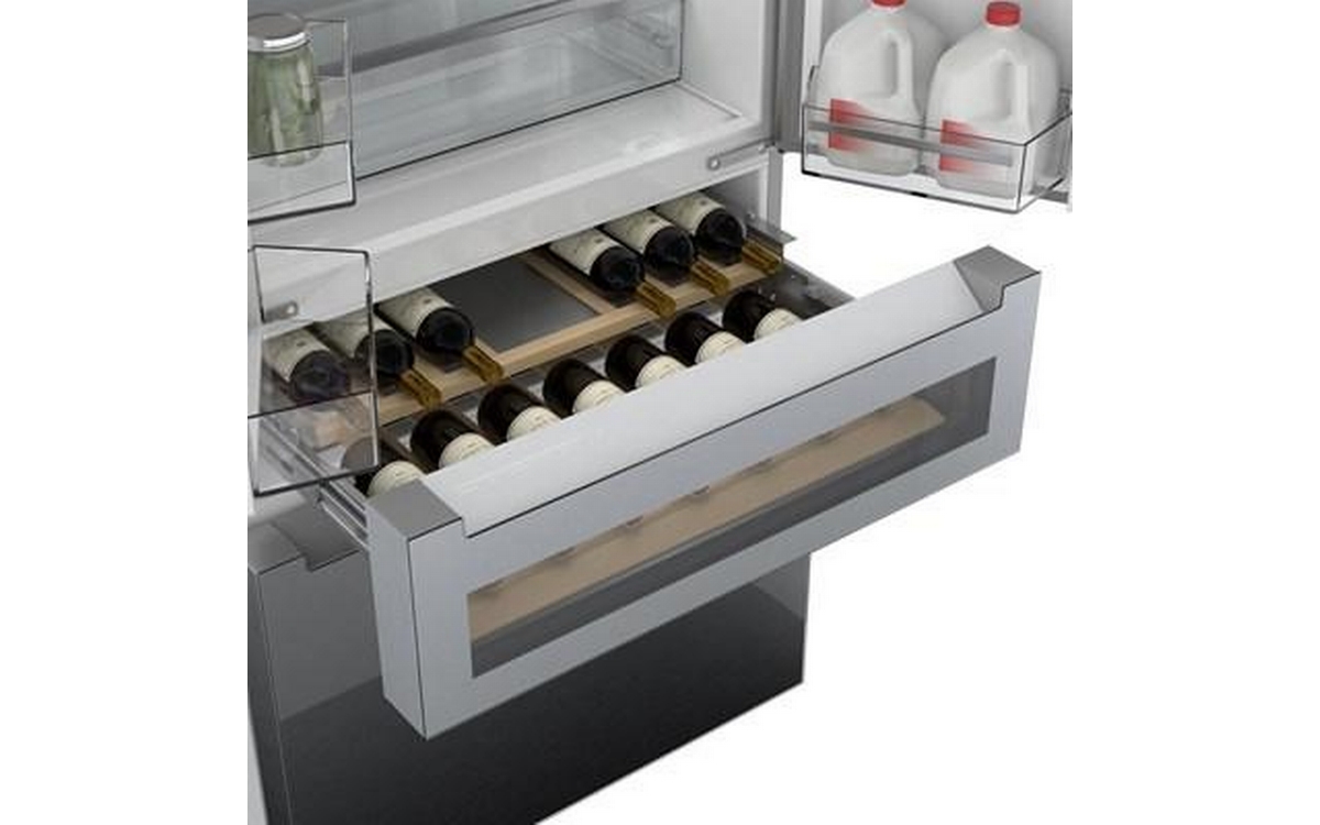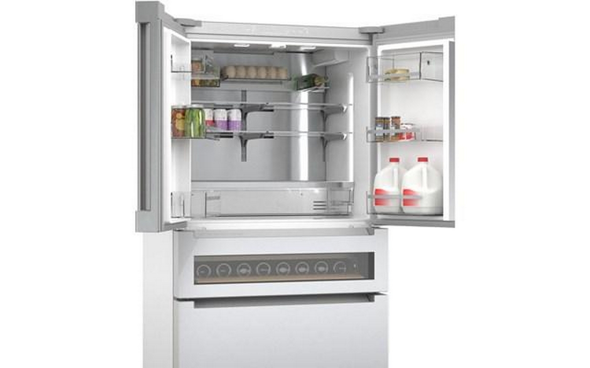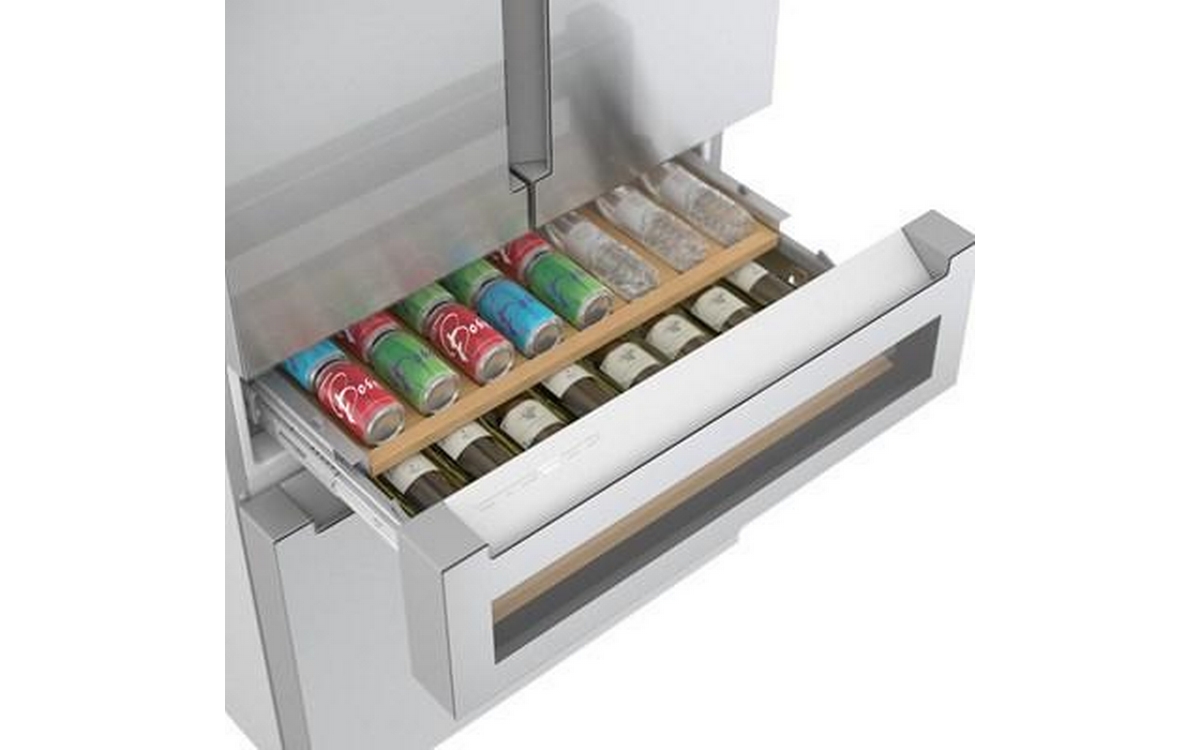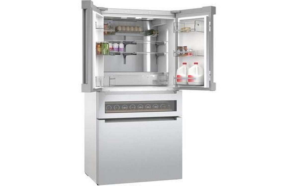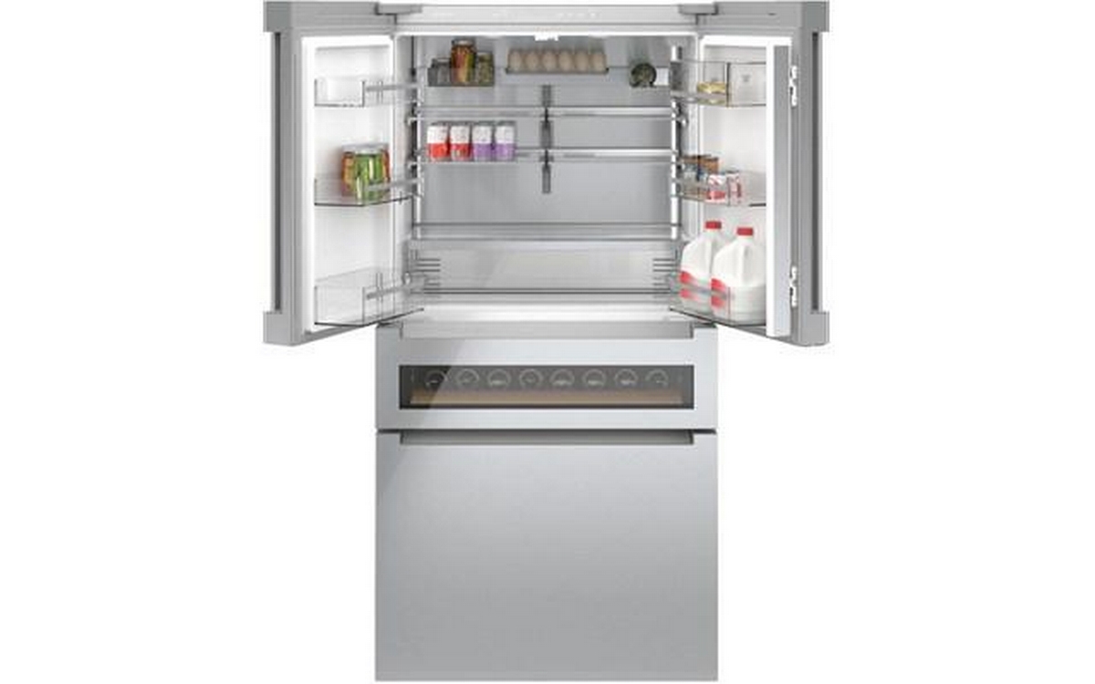 This 36-inch wide Bosch counter-depth, 4-door refrigerator features Wi-Fi connect, automatic defrost, interior icemaker, internal water dispenser and a total capacity of 20.5 cu.ft.