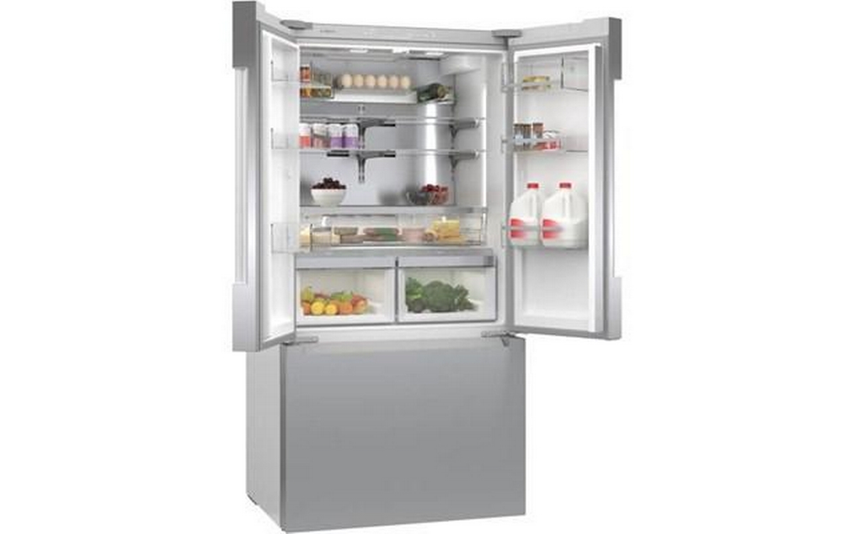 Bosch counter-depth french 3-door refrigerator features FarmFresh System™, LED lighting, interior ice maker and a total capacity of 20.8 cu.ft.