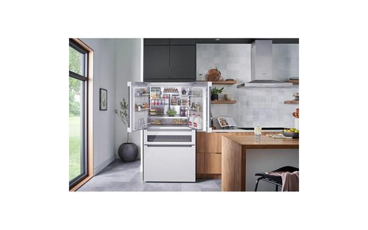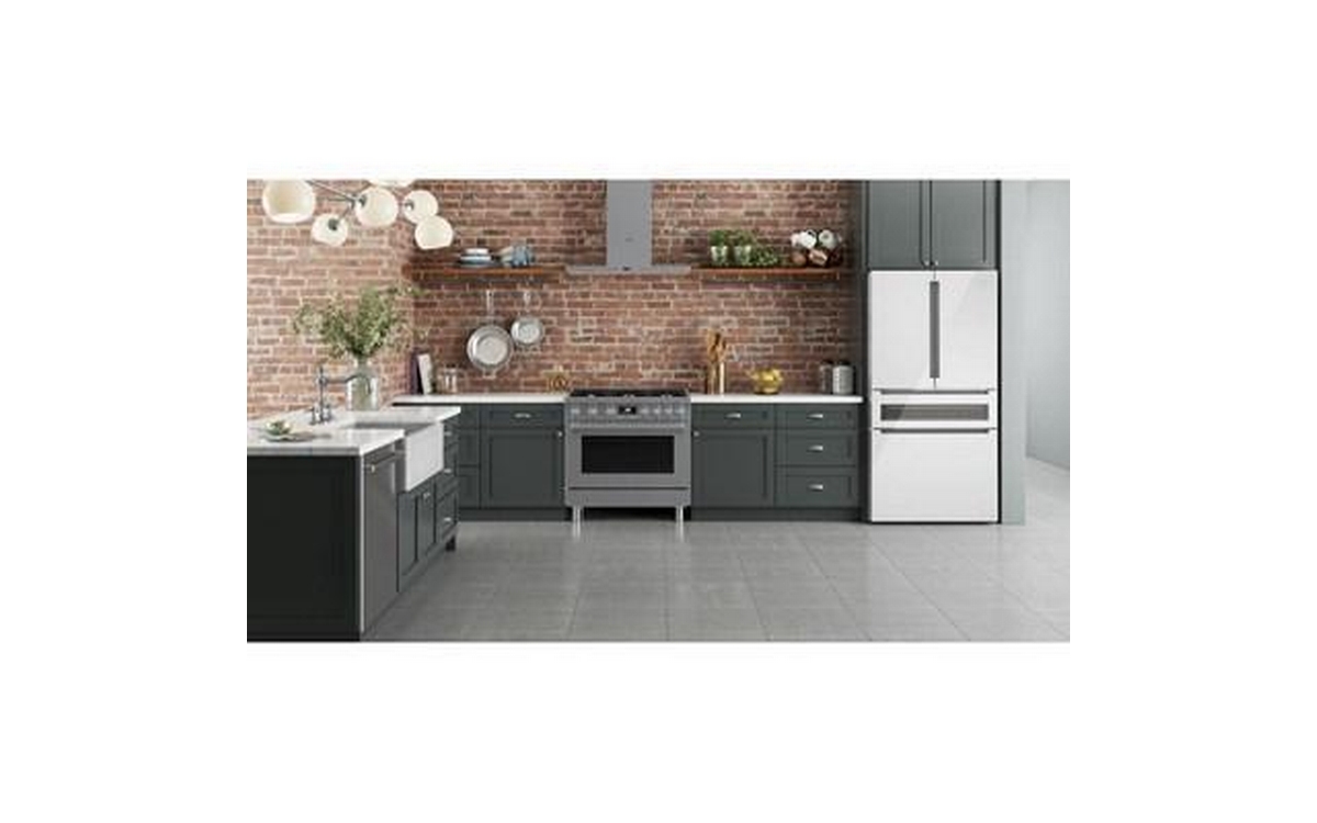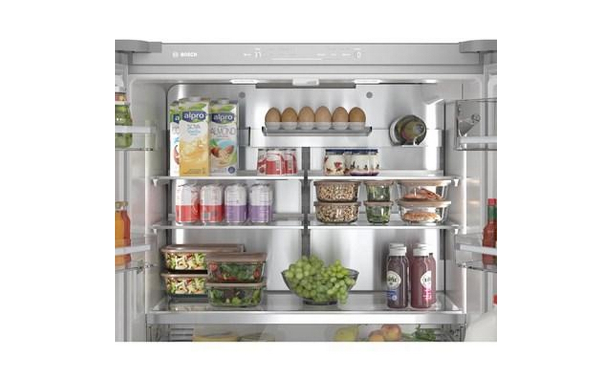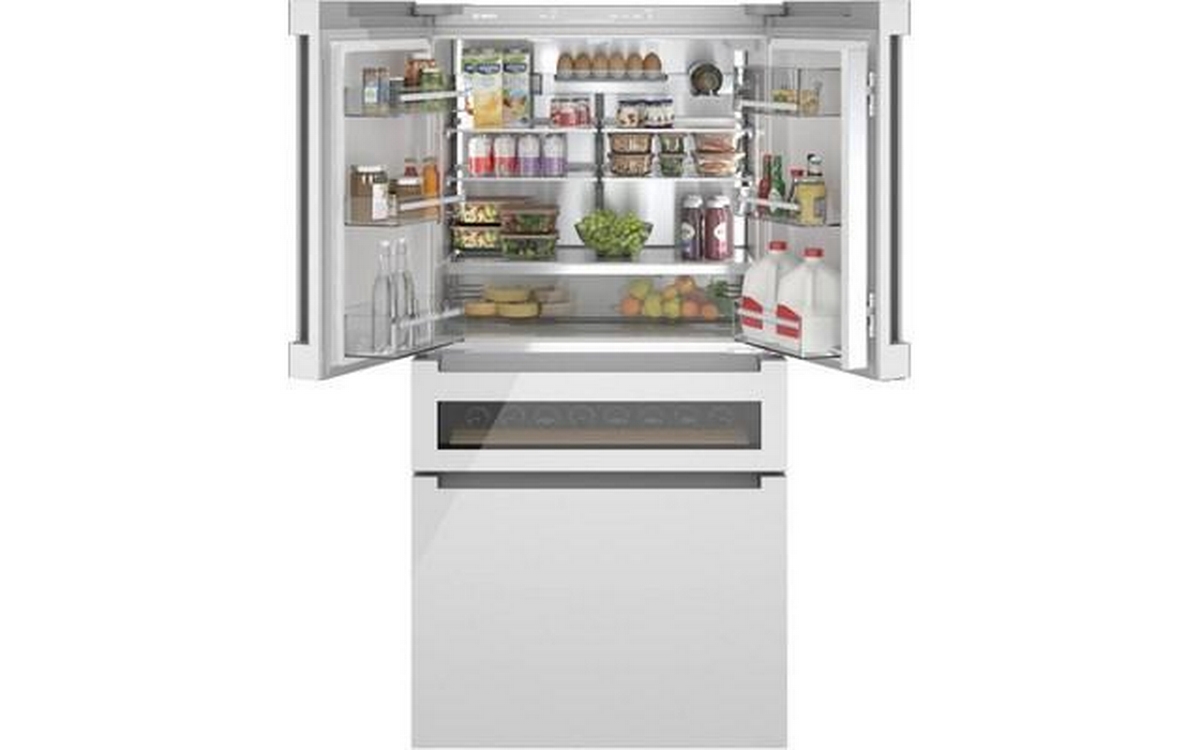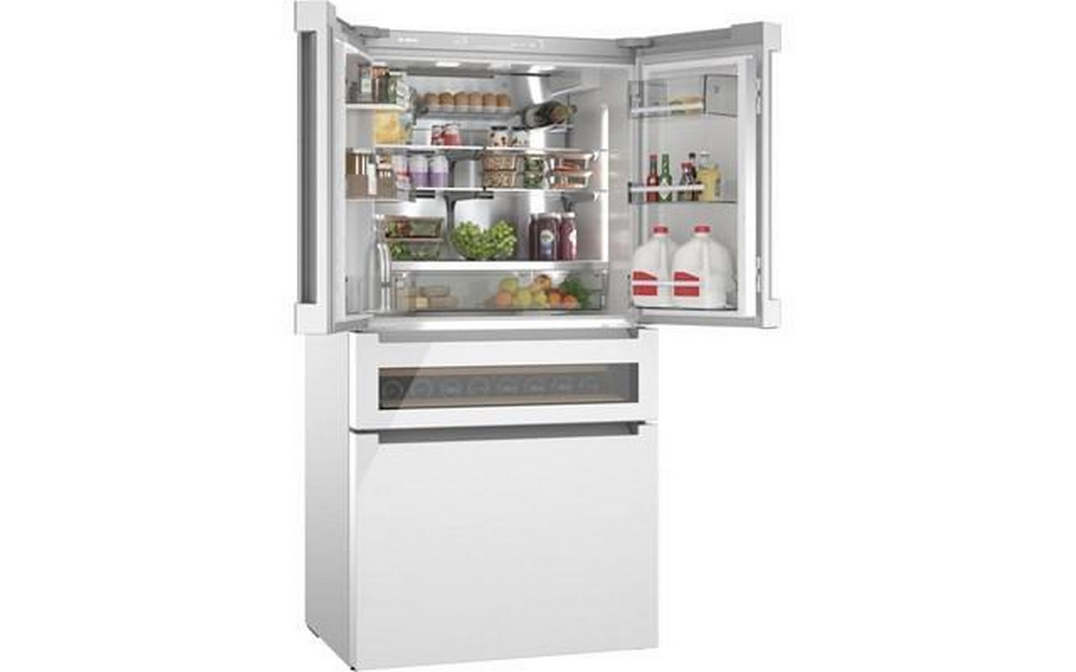 This 36-inch wide Bosch counter-depth, 4-door refrigerator features Wi-Fi connect, automatic defrost, interior icemaker, internal water dispenser and a total capacity of 20.5 cu.ft.