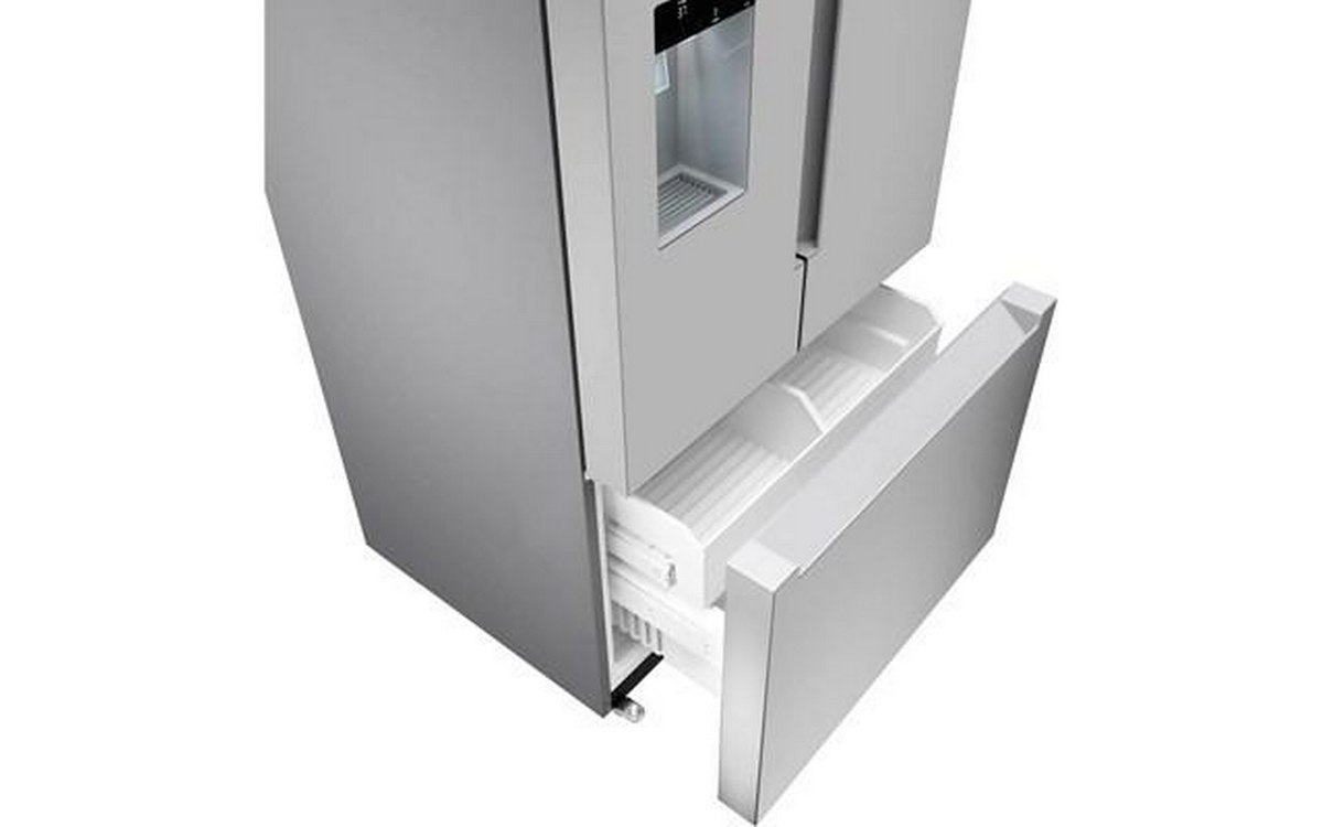 This Bosch 100 series 36" French 3-door refrigerator features the Bosch QuickIce Pro System™ which offers freshly filtered ice, replenished fast. The UltraClarityPro® water filter removes an astonishing 99.9% of sediments from your tap water.