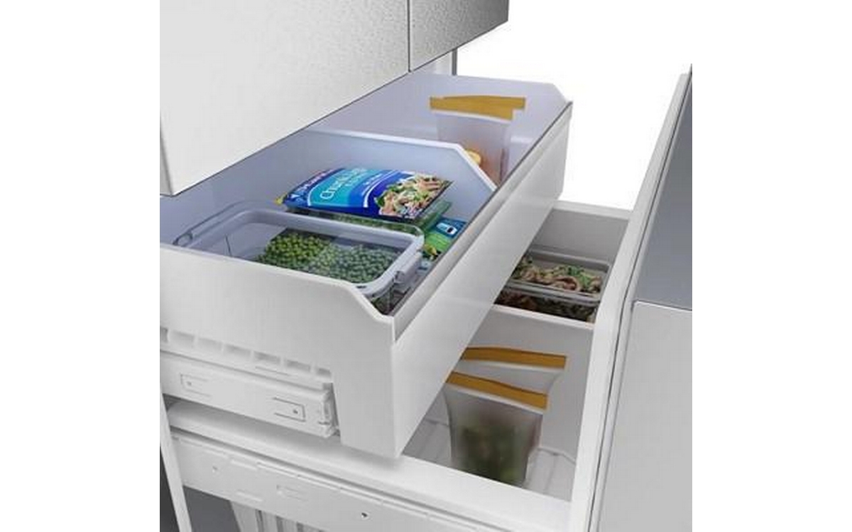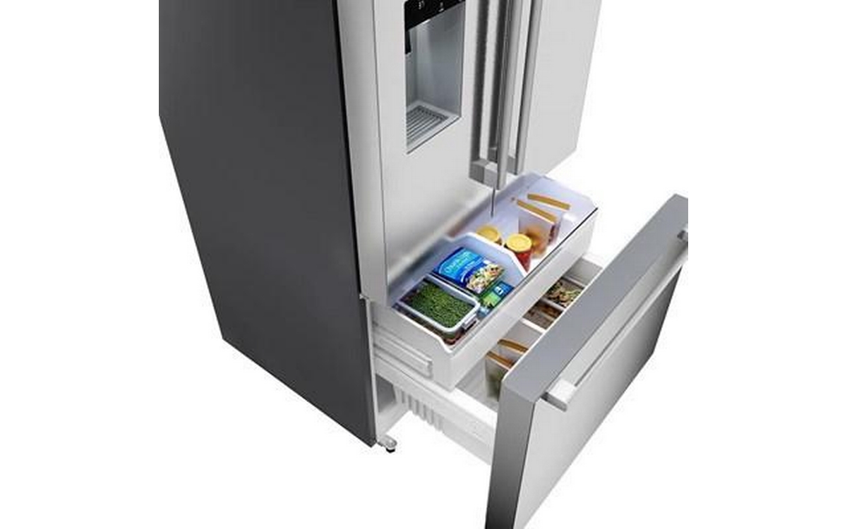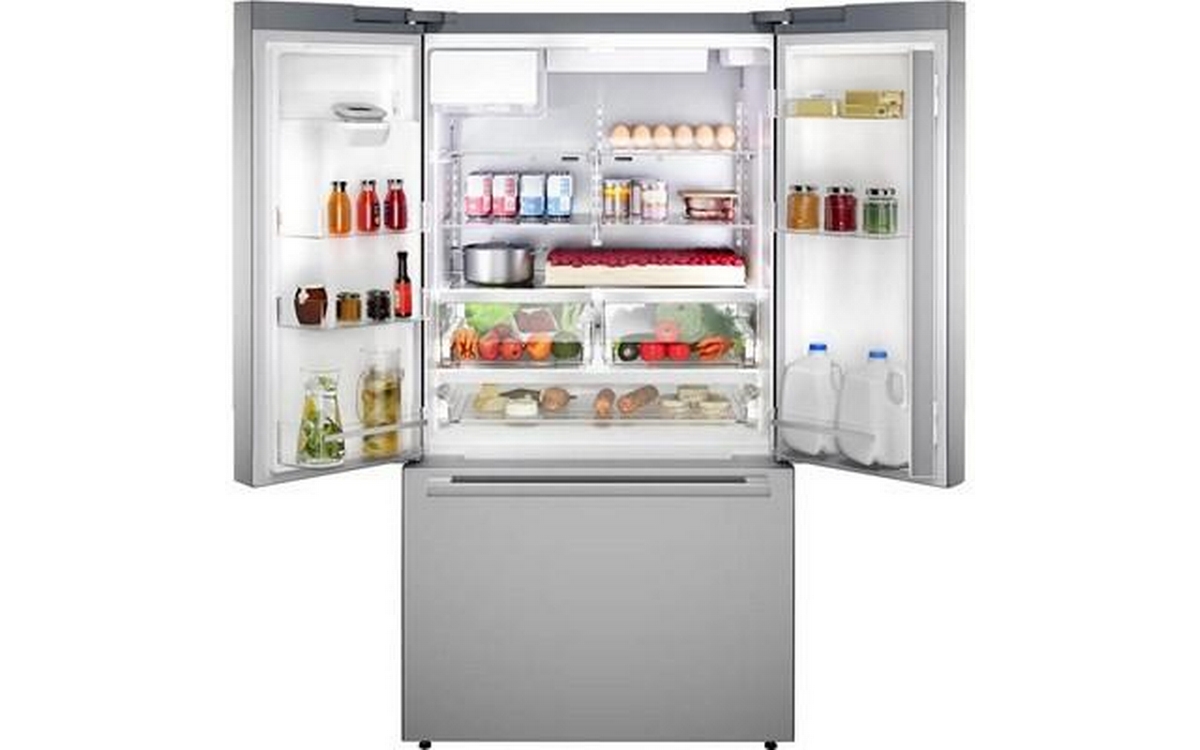 Bosch 36-inch 500 Series French Door Bottom Mount Refrigerator with Total No Frost. Balances temperature and offers customizable humidity, for the optimal environment for your fruits and vegetables. Two bins allow for ample storage and organization, each bin with separate humidity control. The innovative QuickIcePro System™ combines three technologies to produce fresh filtered ice in your refrigerator—fast. *Based on single ice maker production rates during a 24 hour period, measured per IEC standards, when the ice bin was removed. Results may vary depending on operating conditions.