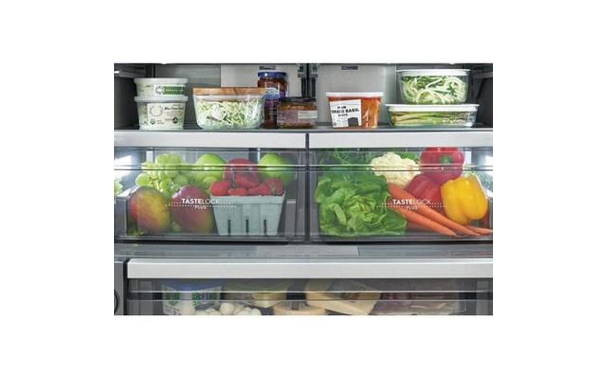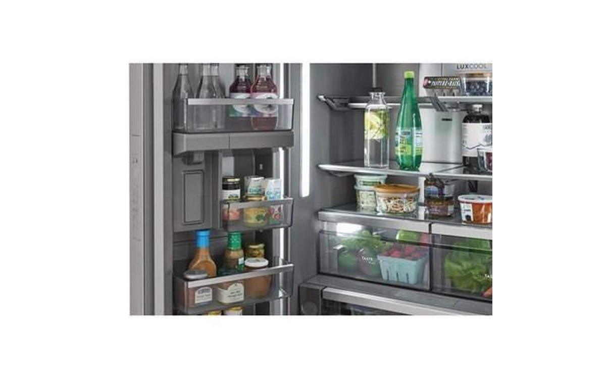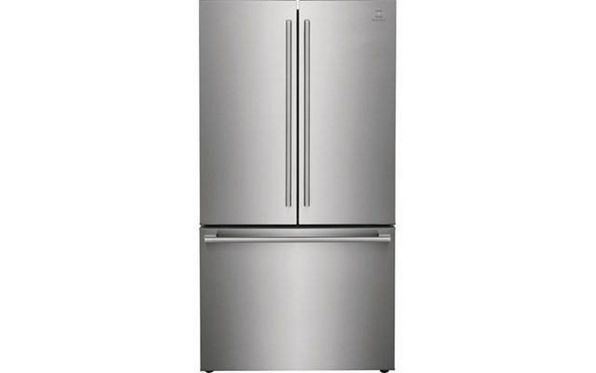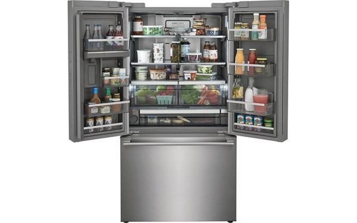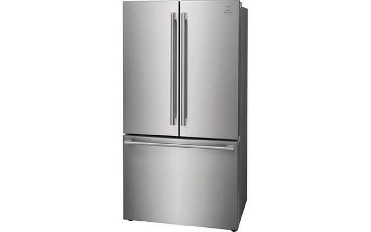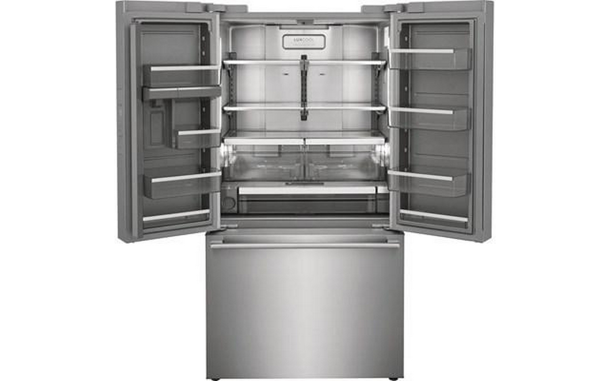 Electrolux 36-inch counter-depth, french 3-door refrigerator features interior ice maker and water dispenser, adjustable glass shelves and a total capacity of 22.6 cu.ft.