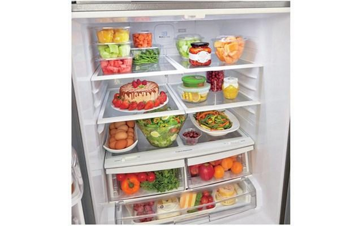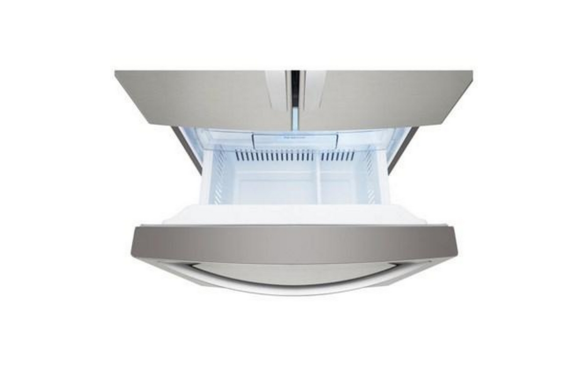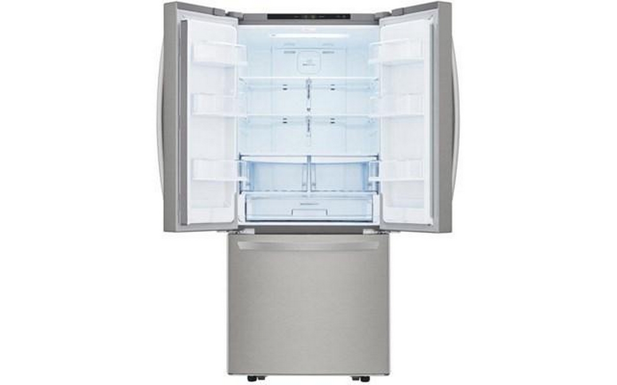This LG 21.8 cu.ft. french 3-door refrigerator features SmartDiagnosis™ Technology, Smart Cooling Plus™ System, digital temperature control and Spill Protector™ tempered glass shelves.