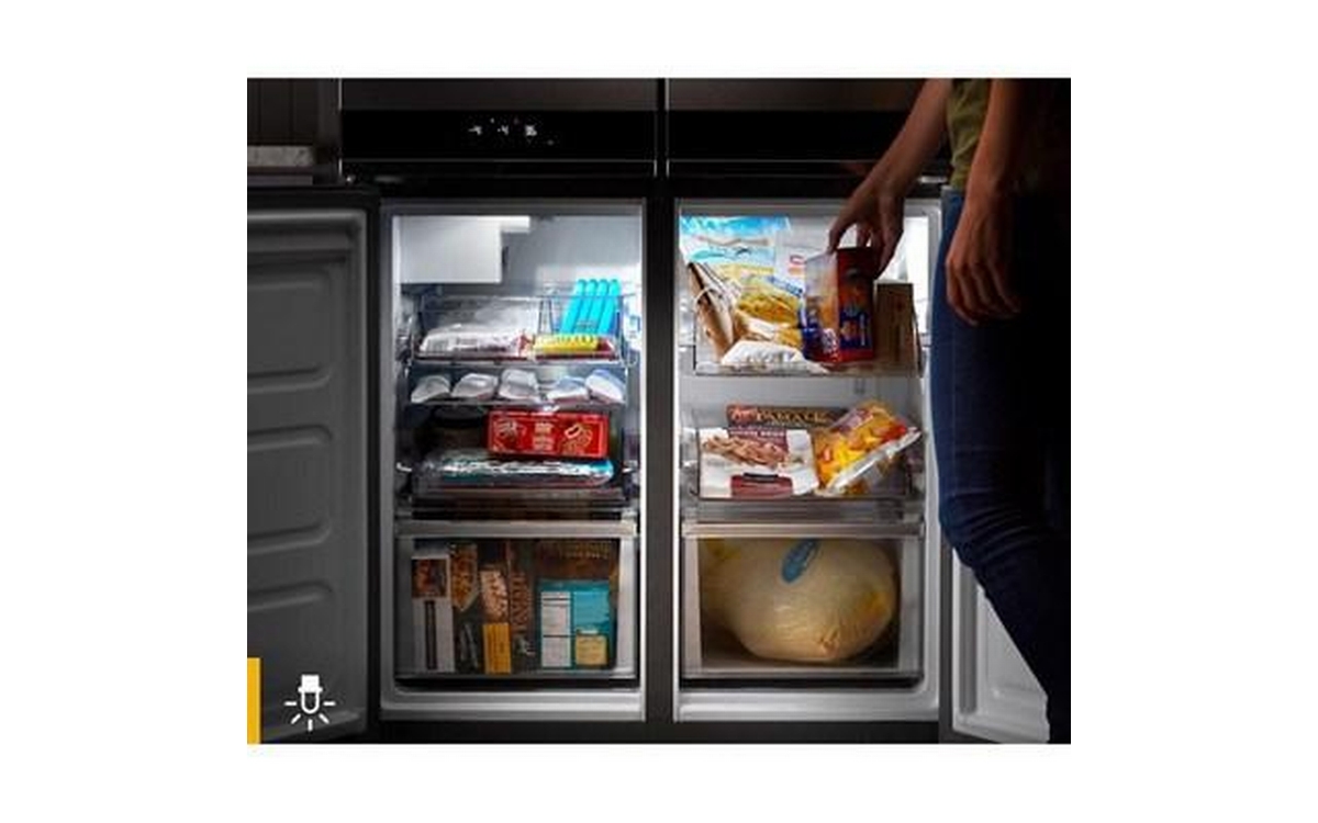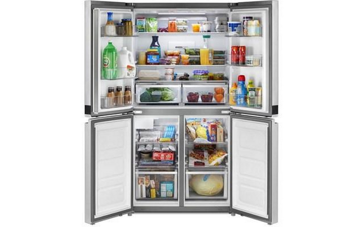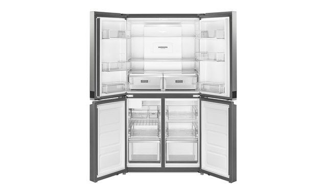 This 4 door refrigerator is more than sleek. Four compartments help keep fresh and frozen groceries organized and accessible.