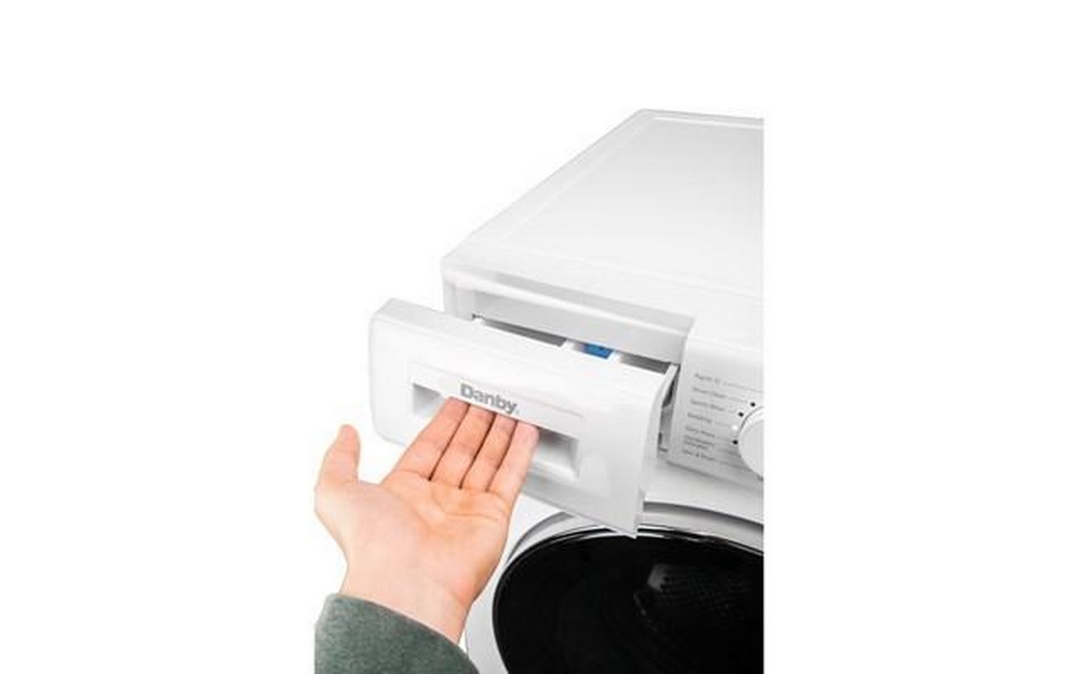 Danby 24-inch front load washer features twin jet, 15 wash cycles, a stainless steel drum and 1400 RPM.